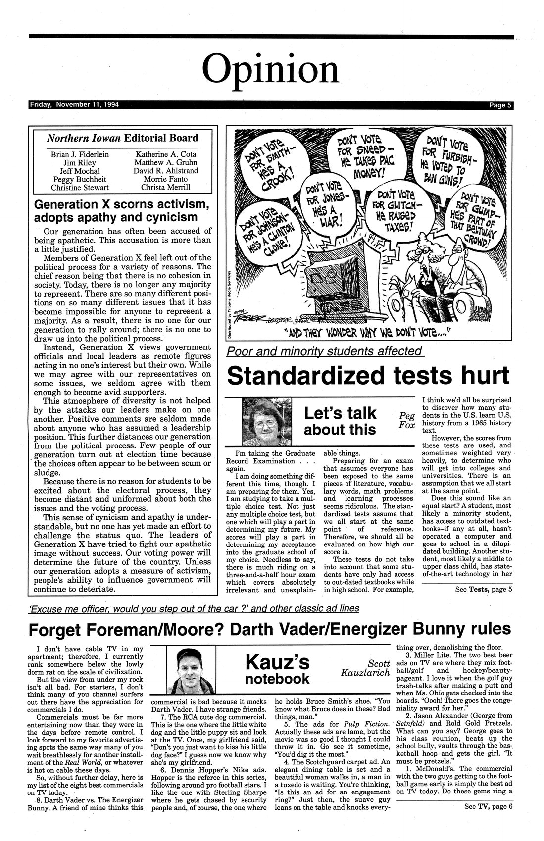 | Generation X scorns activism, adopts apathy and cynicism | Urges young people to become involved in the electoral process. |