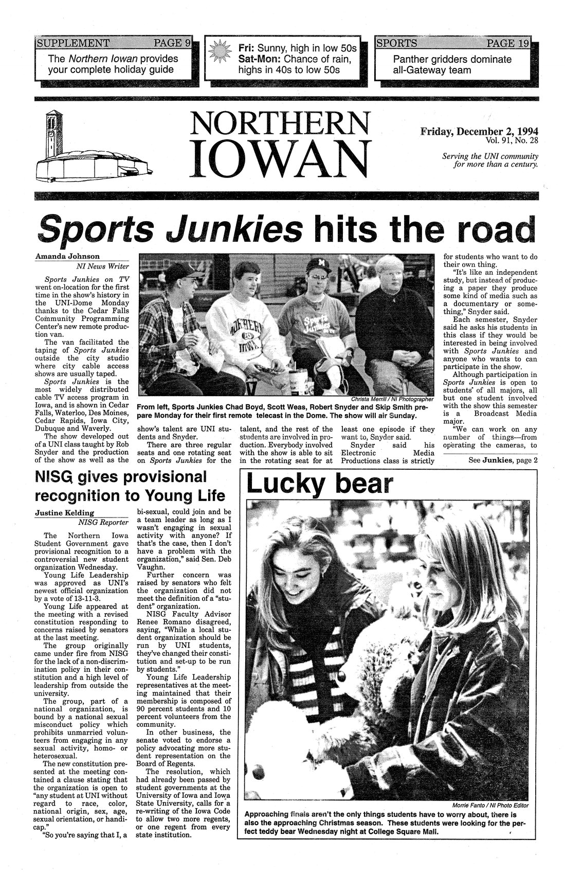 | Sports Junkies hits the road | Television show produced in UNI-Dome; photo. |