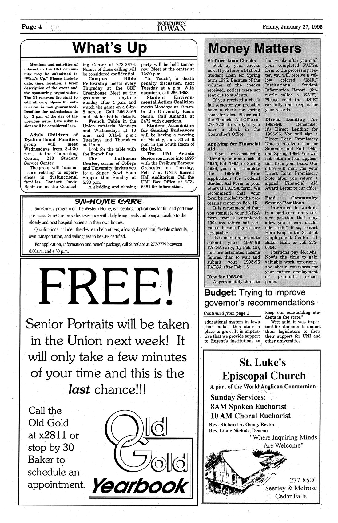 | Planning UNI's future | Suggests improvements including buses and registration by computer. |