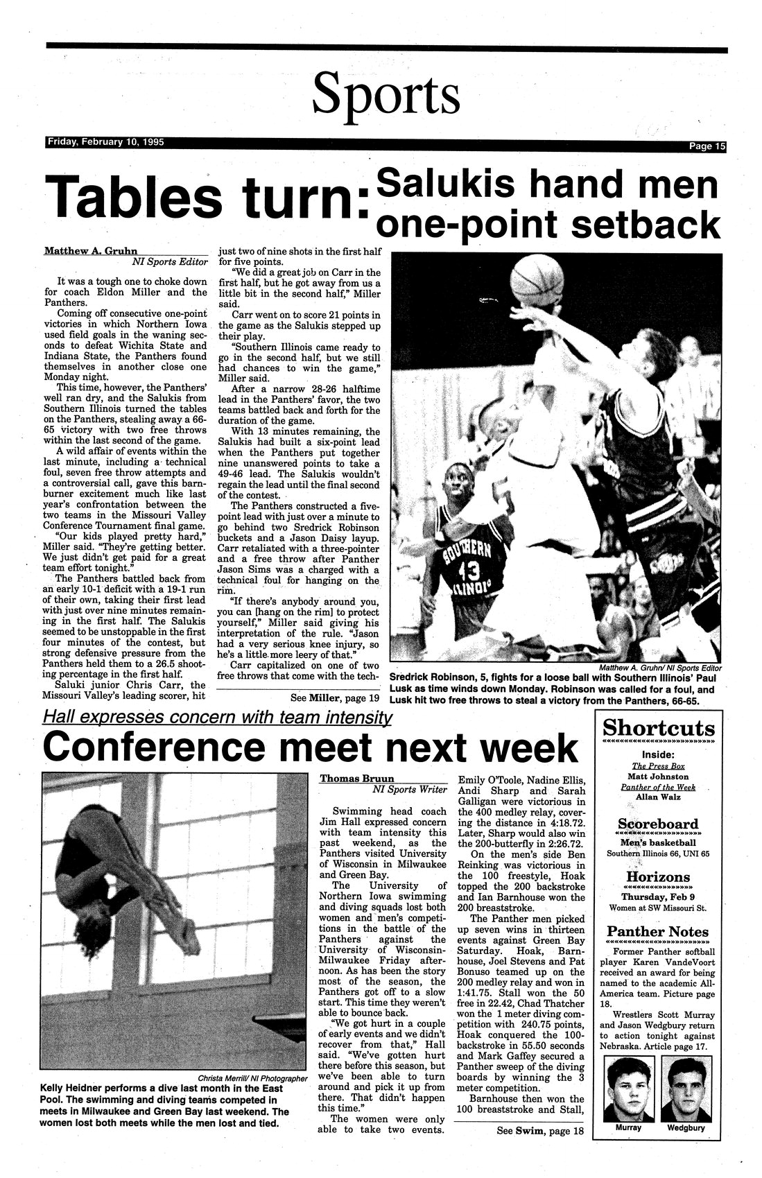| Tables turn: Salukis hand men one-point setback | Southern Illinois beats UNI, 66-65. |
