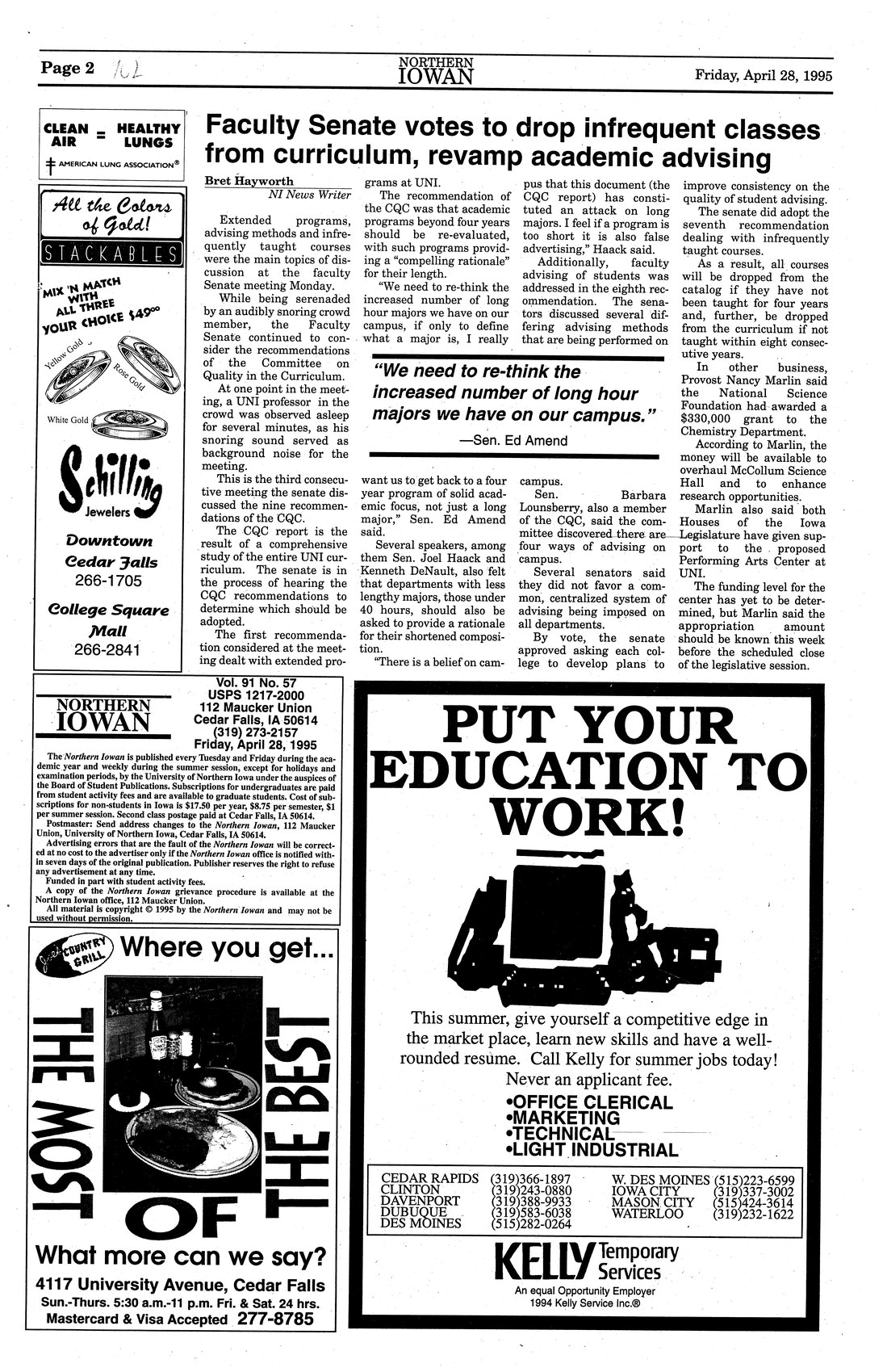 | Faculty Senate votes to drop infrequent classes from curriculum, revamp academic advising | Continue to consider Quality in the Curriculum report. |