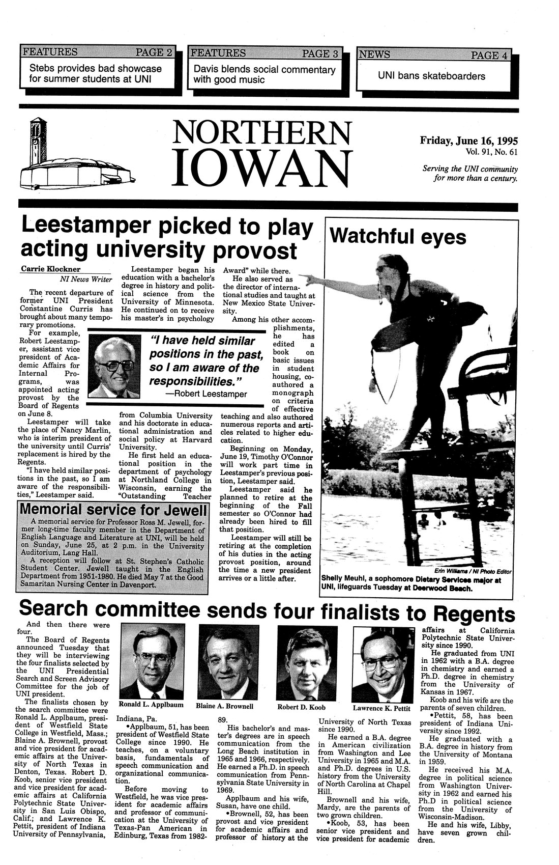 | Memorial service for Jewell | English Professor Ross Jewell died May 7, 1995. |