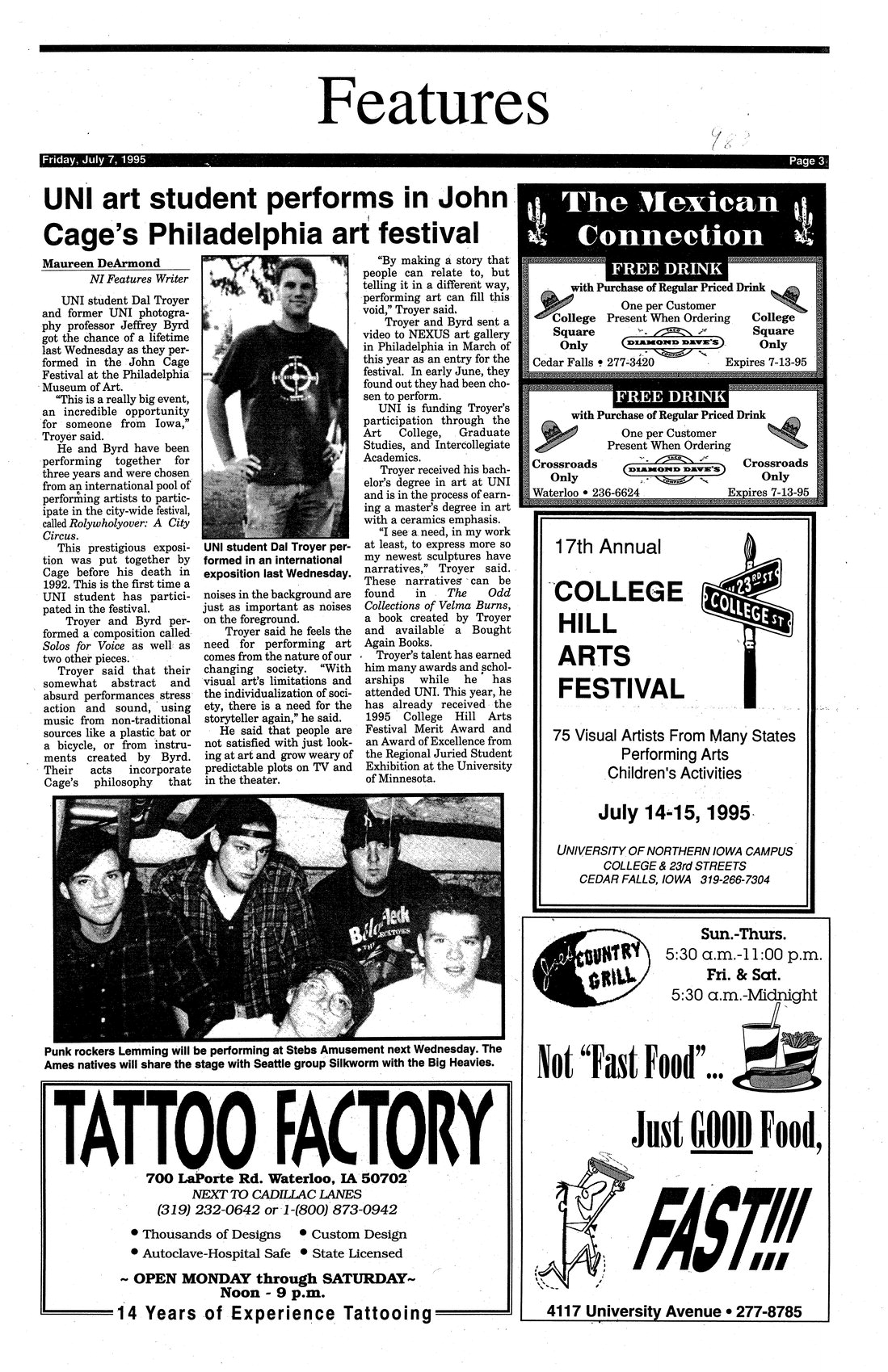 | UNI art student performs in John Cage's Philadelphia art festival | Dal Troyer talks about the experience; photo. |