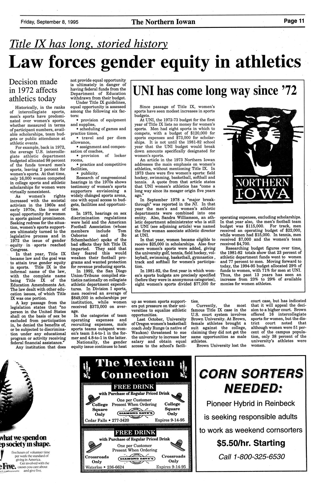 UNI has come long way since '72 Traces history of changes relating to gender equity in athletics at UNI.