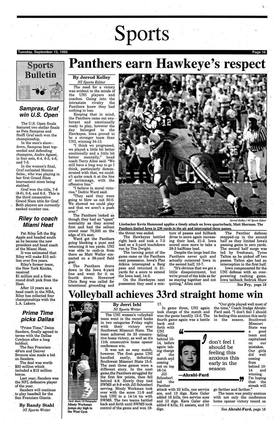 Panthers earn Hawkeyes' respect Iowa beats UNI, 34-13; photo.