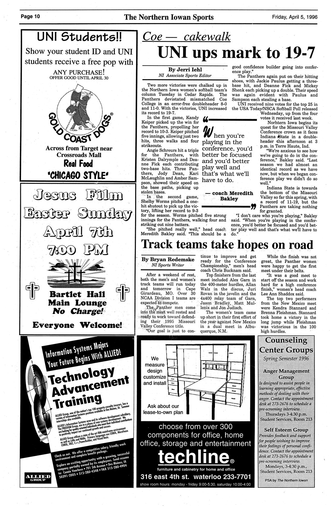 | UNI ups mark to 19-7; Coe-cakewak | Panther softball defeats Coe College, 8-0 and 11-0. They play Indiana State this afternoon. |