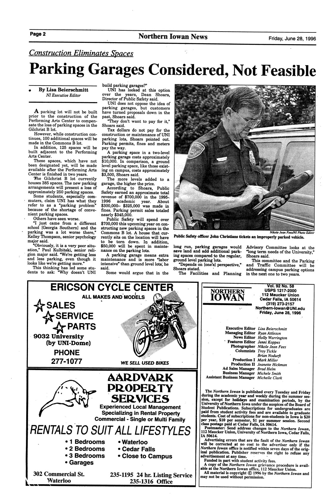 Parking garages considered, not feasible Parking situation shifting with construction of Gallagher-Bluedorn Performing Arts Center; not economically possible to build parking ramp.