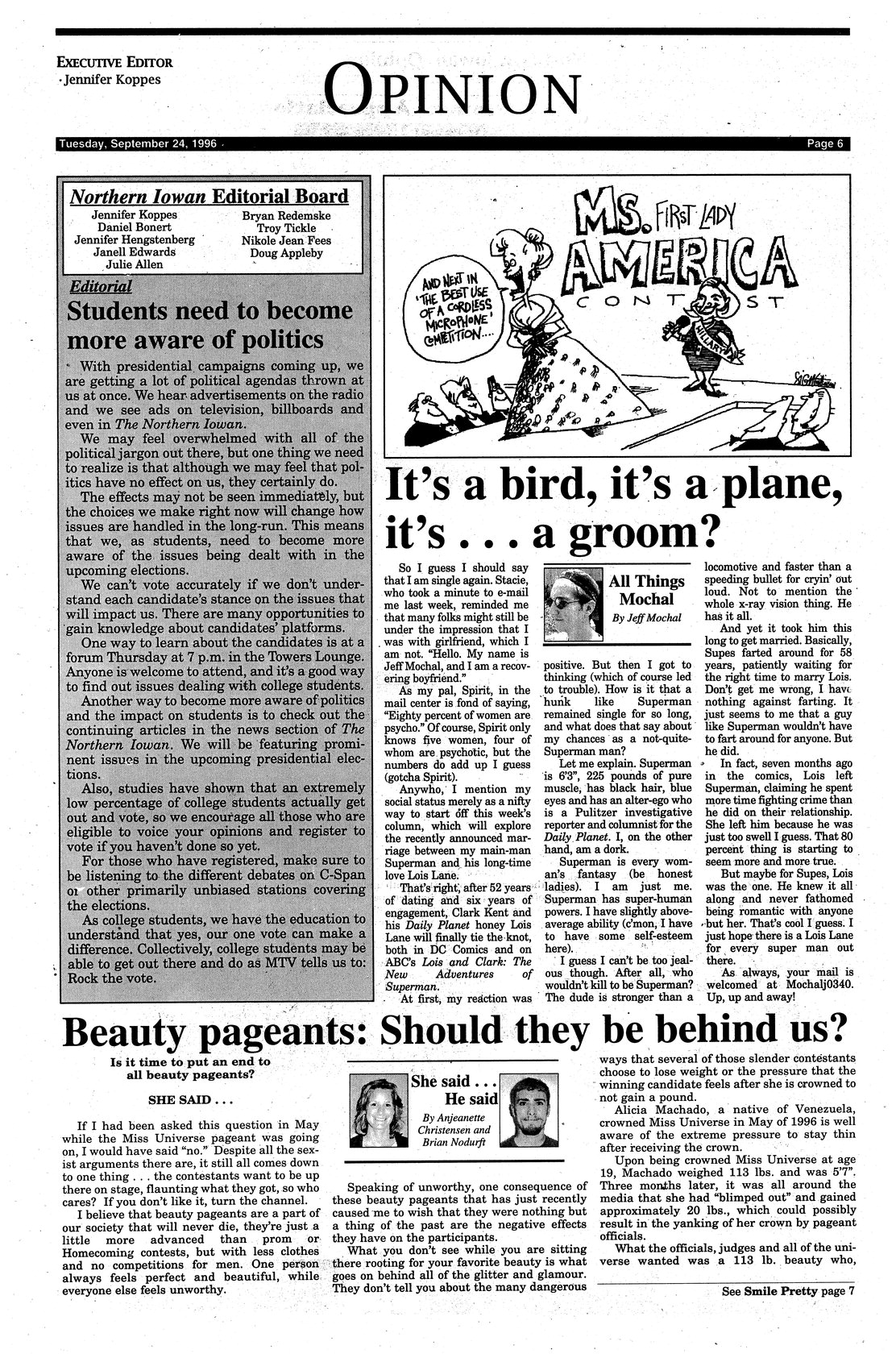 | Students need to become more aware of politics | Editorial comments on the involvement of college students in politics. |