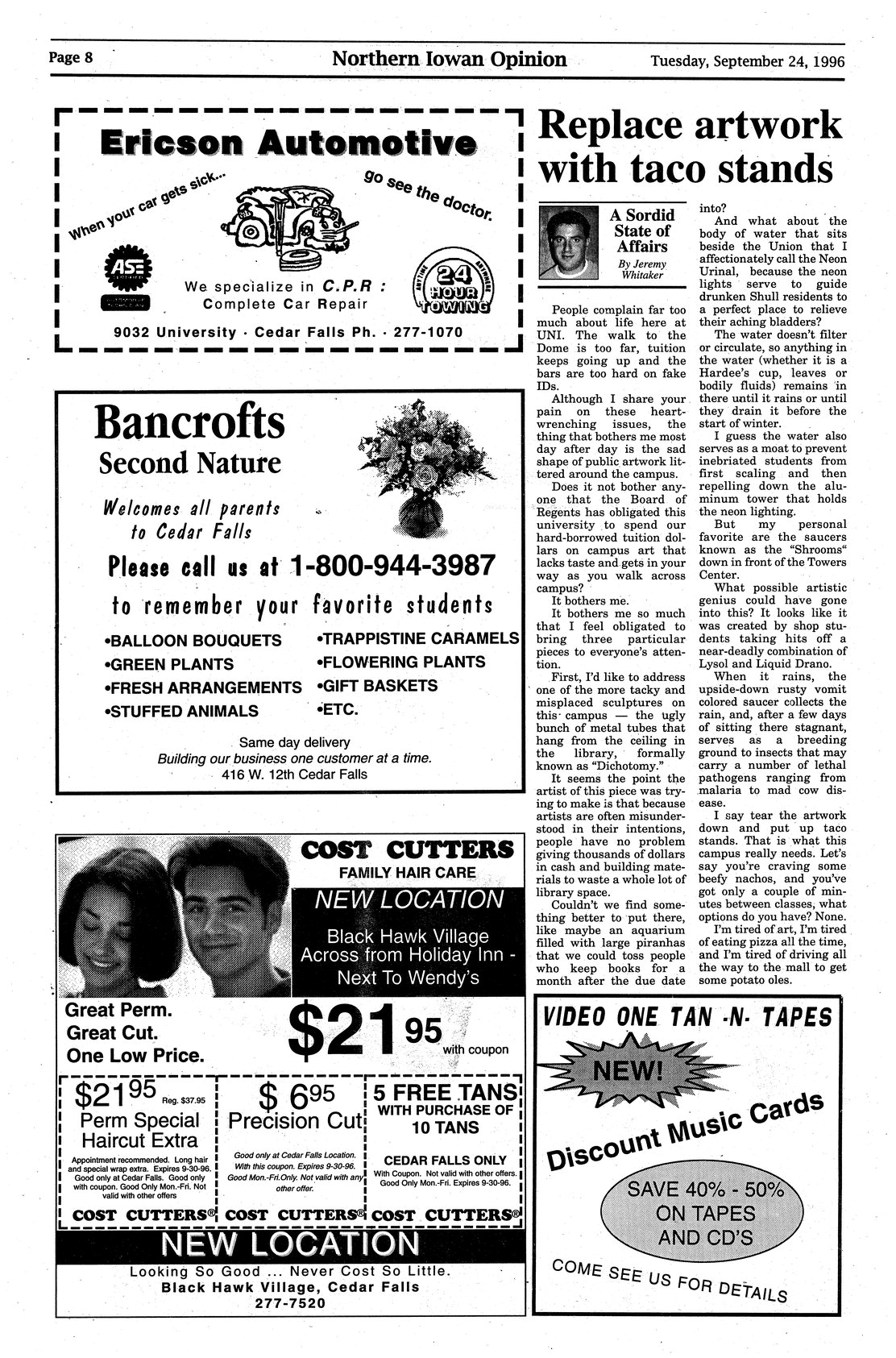 | Replace artwork with taco stands | Columnist comments on sculptures on campus. |