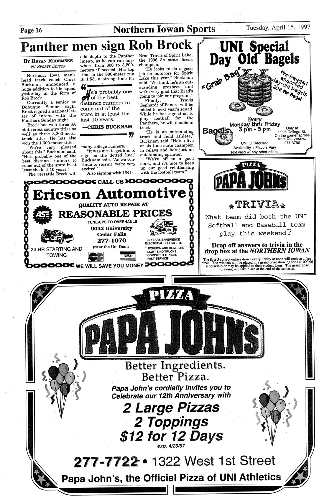 | Panther men sign Rob Brock | Rob Brock signed a letter of intent with the University and the men's track and field team; Travis Gephardt will also run for UNI. |