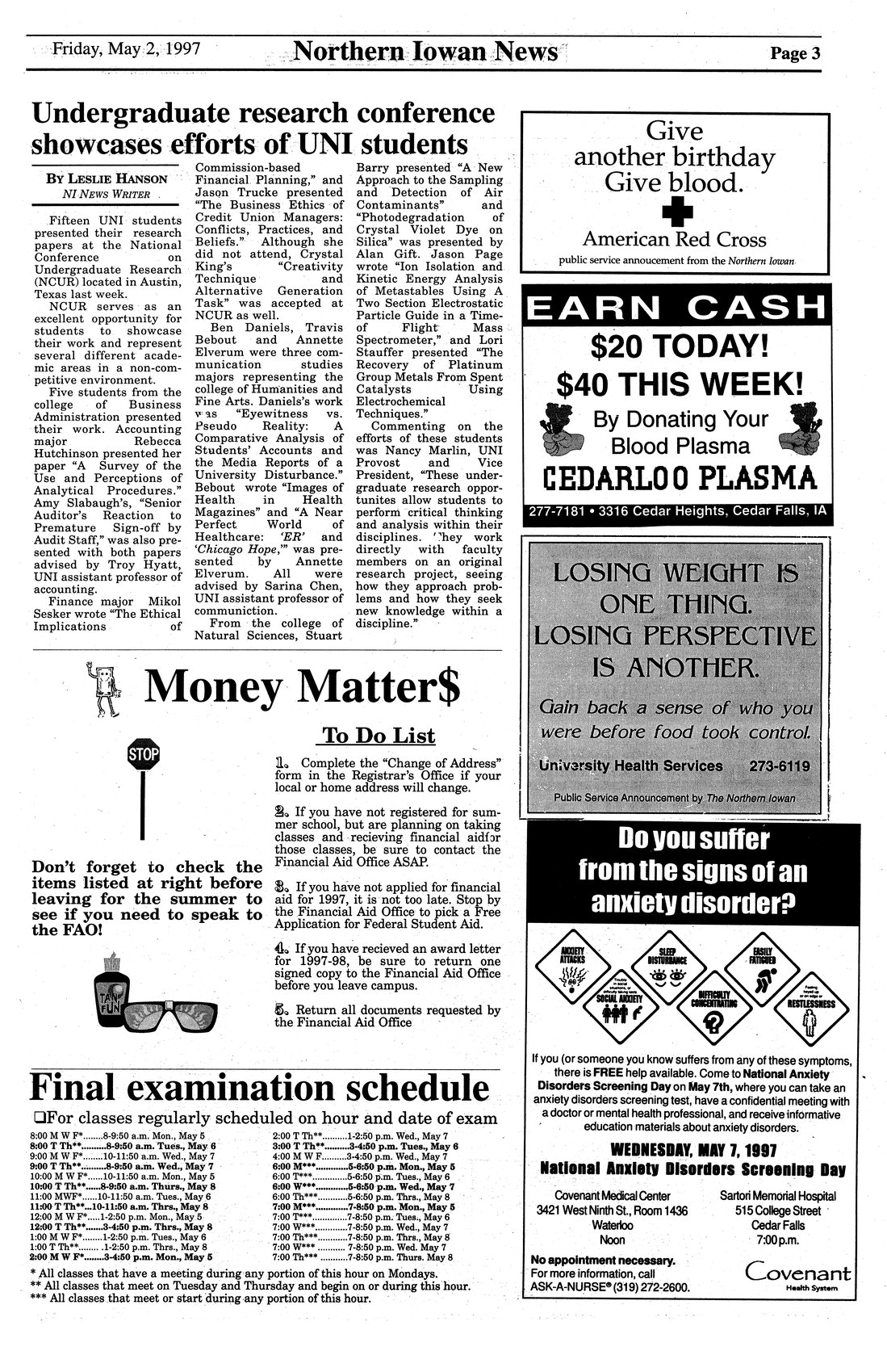 Undergraduate research conference showcases efforts of UNI students Fifteen UNI students presented their research at National Conference on Undergraduate Research.