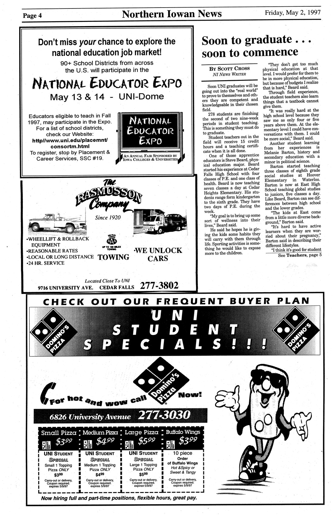 Soon to graduate . . . Soon to commence 278 students are finishing up their careers at UNI with student teaching.