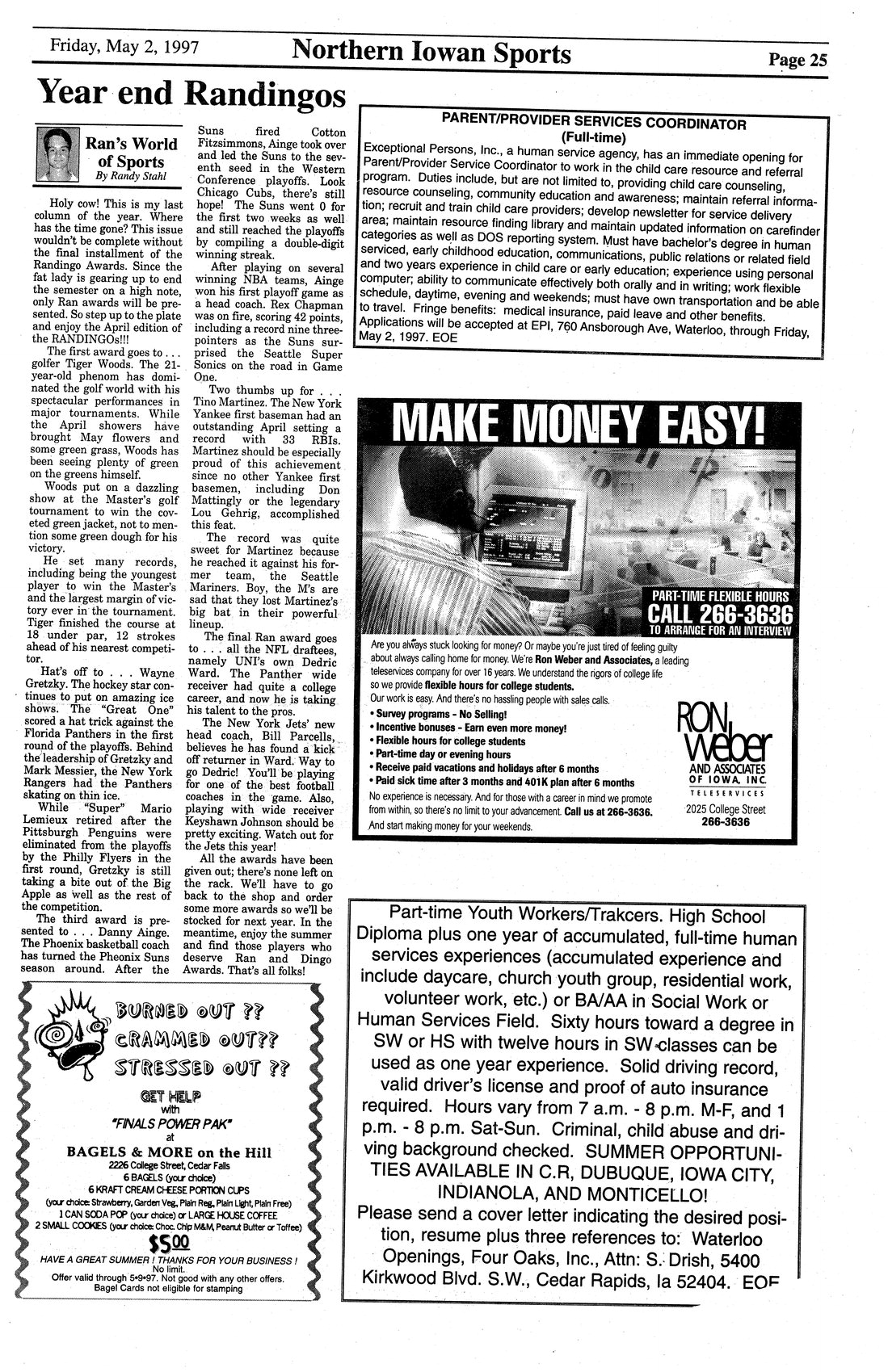 Year end Randingos Awards Randingo Award to Tiger Woods, Wayne Gretzky, Danny Ainge, Tino Martinez, and Dedric Ward.