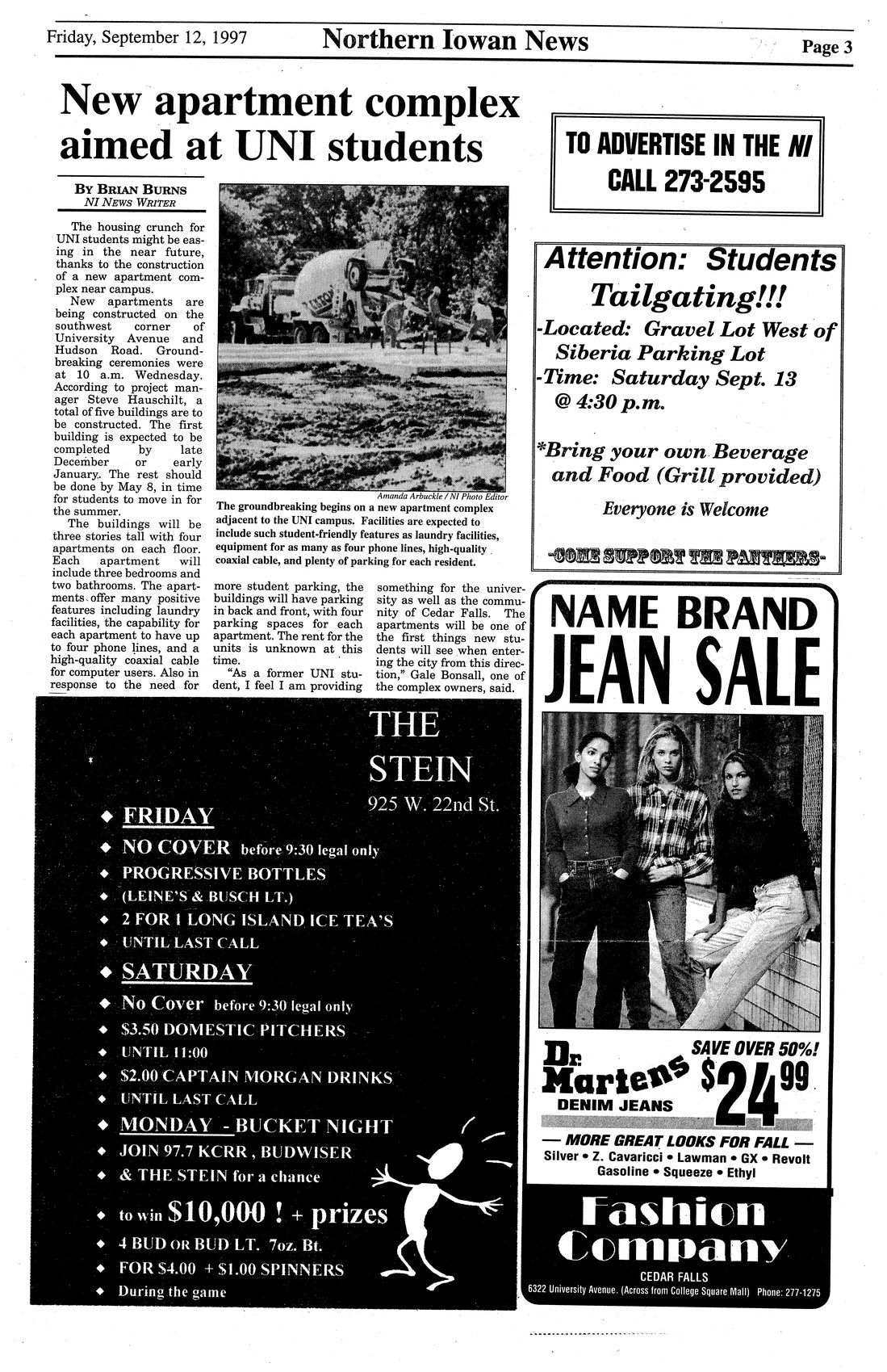 | New apartment complex aimed at UNI students | New apartment complex to be built on southwest corner of Hudson Road and Universtiy Avenue; photo. |