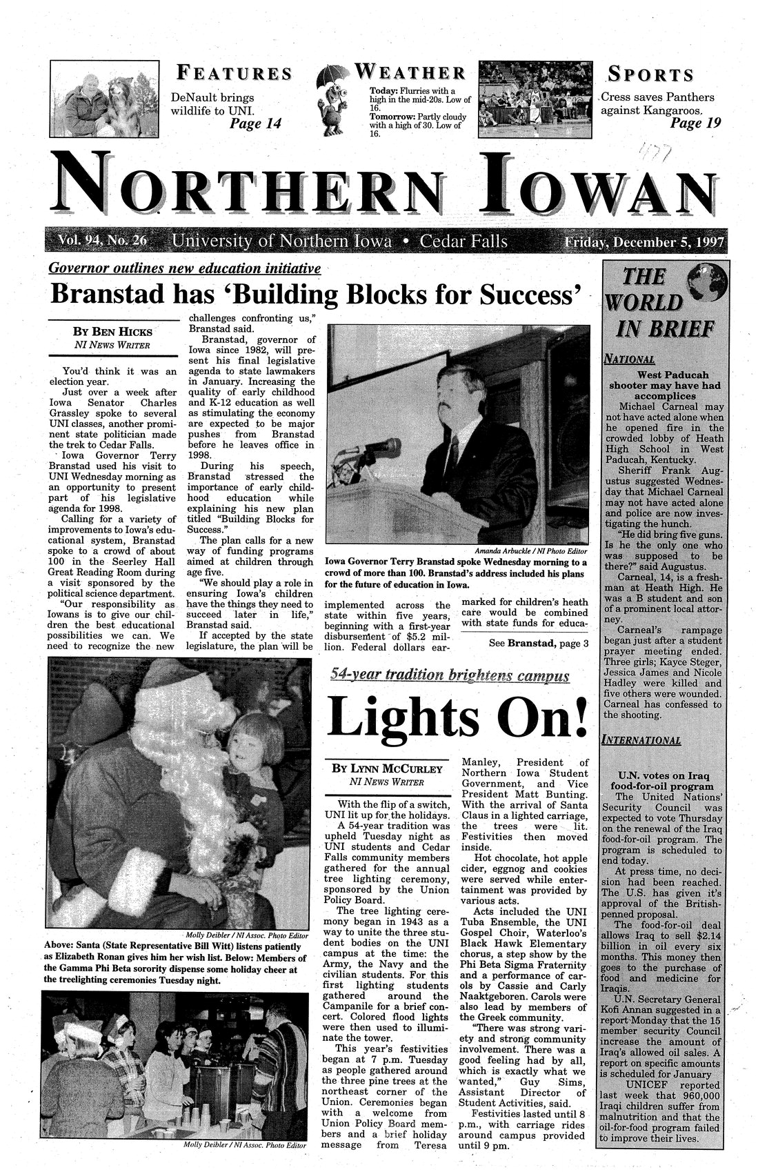Lights on!; 54 year tradition brightens campus Tree lighting ceremony includes snacks and caroling; photo.