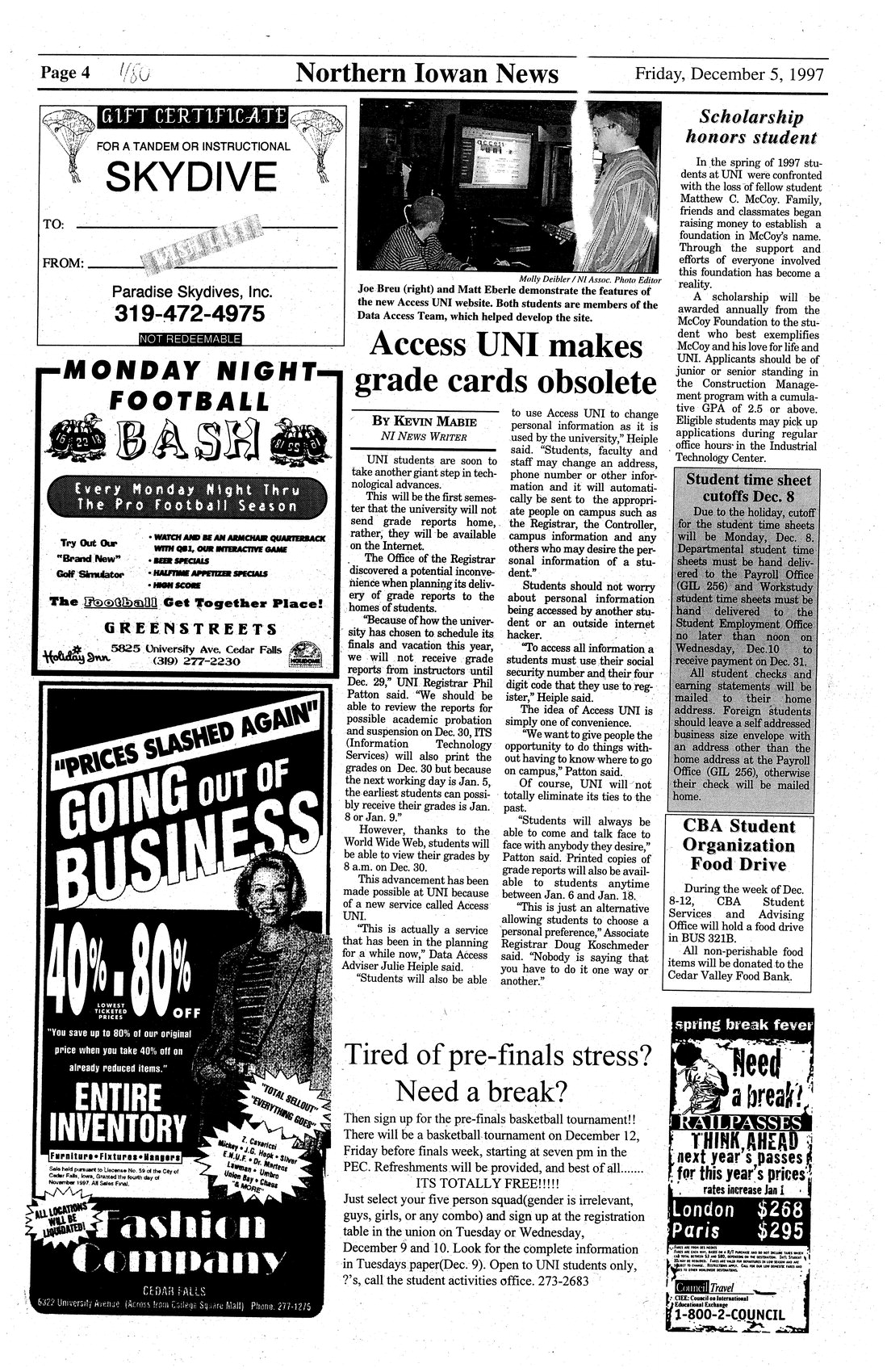 Access UNI makes grade cards obsolete Grades will be available by computer at end of this semester; photo.