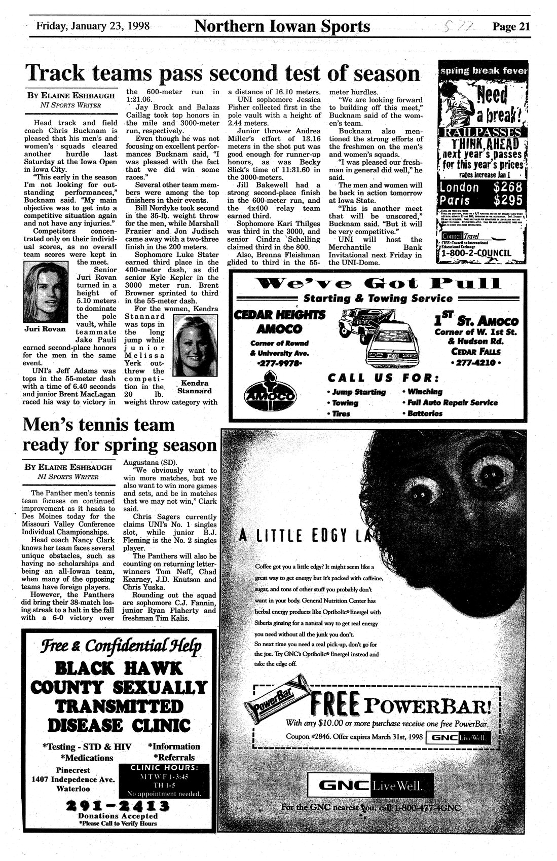 | Track teams pass second test of season | UNI track teams performed well at the Iowa Open Saturday in Iowa City; photo. |