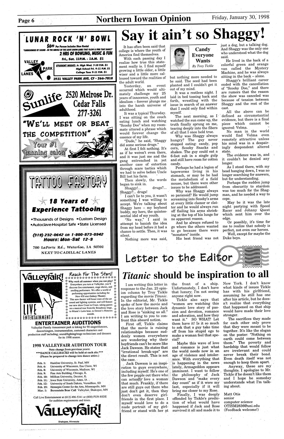 | Say it ain't so Shaggy! | Columnist comments on the character Shaggy from the cartoon "Scooby Do." |