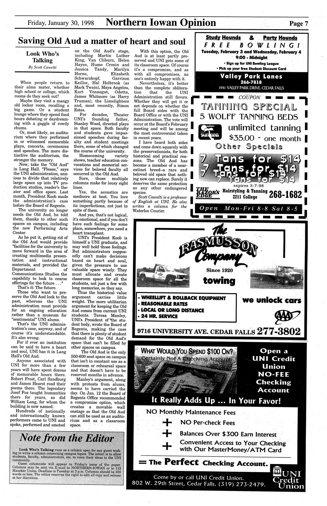 | Saving Old Aud a matter of heart and soul | Professor Scott Cawelti wants to save the Lang Hall auditorium from destruction. |