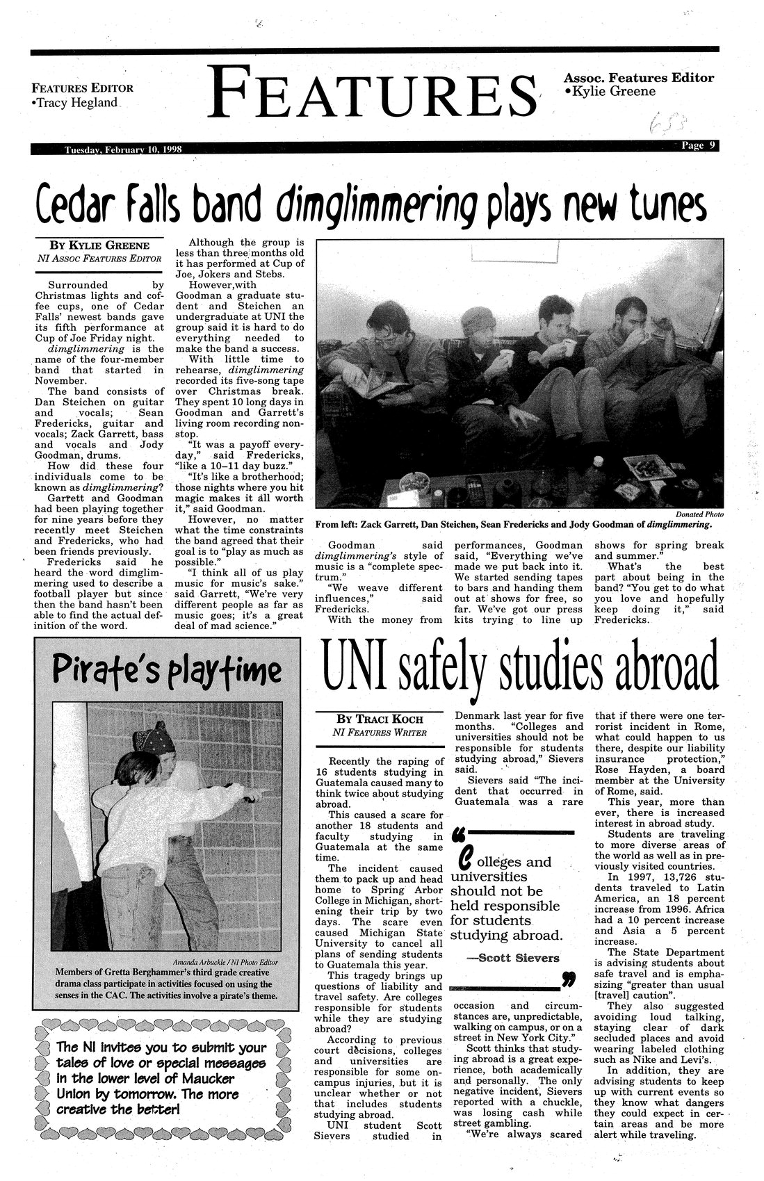 | Cedar Falls band "dimglimmering" plays new tunes | Four-member group "dimglimmering" started playing together in November; photo. |