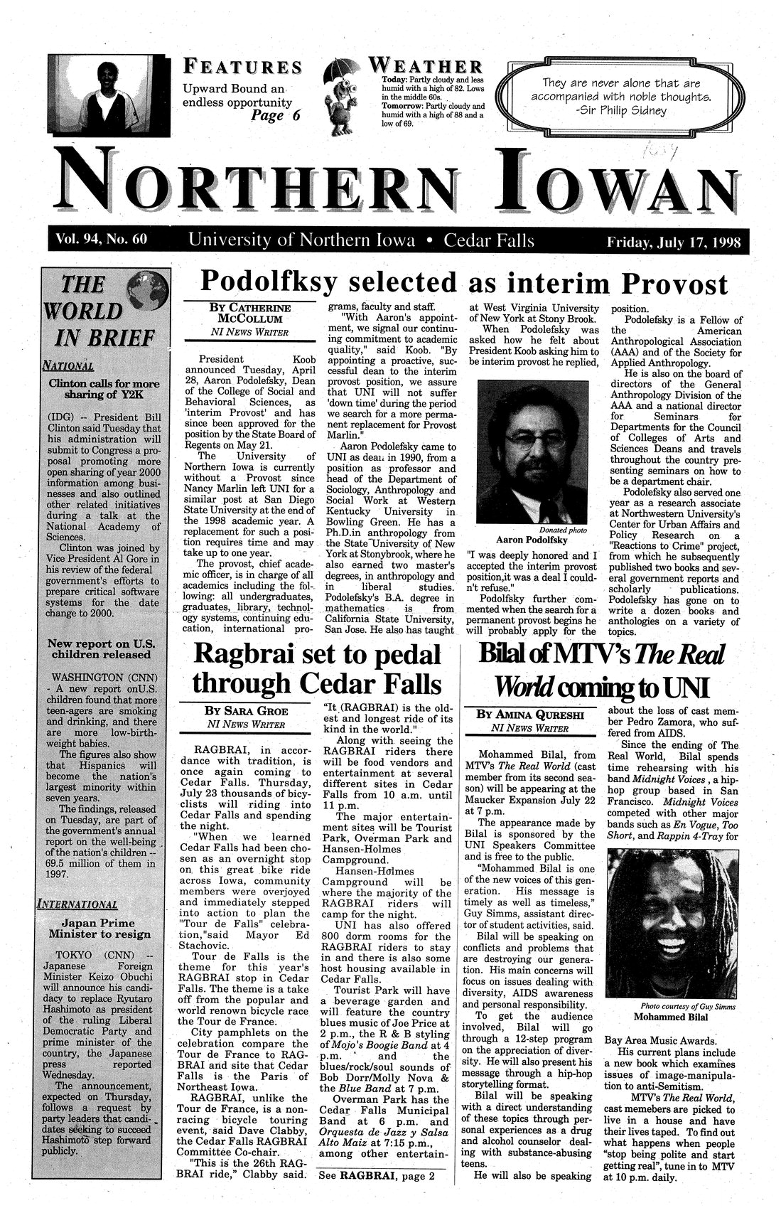 RAGBRAI set to pedal through Cedar Falls RAGBRAI bicycle riders will make an overnight stop in Cedar Falls July 23, 1998.