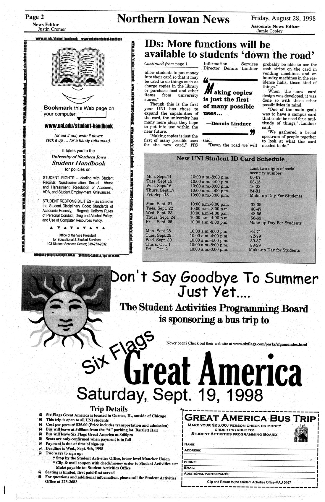 | New UNI student ID card schedule | Students will get their new ID cards according to their social security number. |