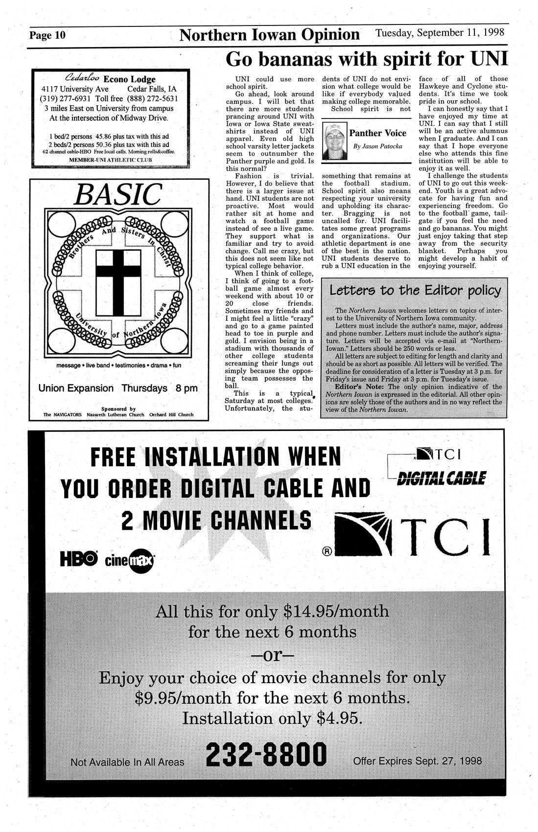 | Go bananas with spirit for UNI | Students should attend football games, have fun, and show school spirit. |