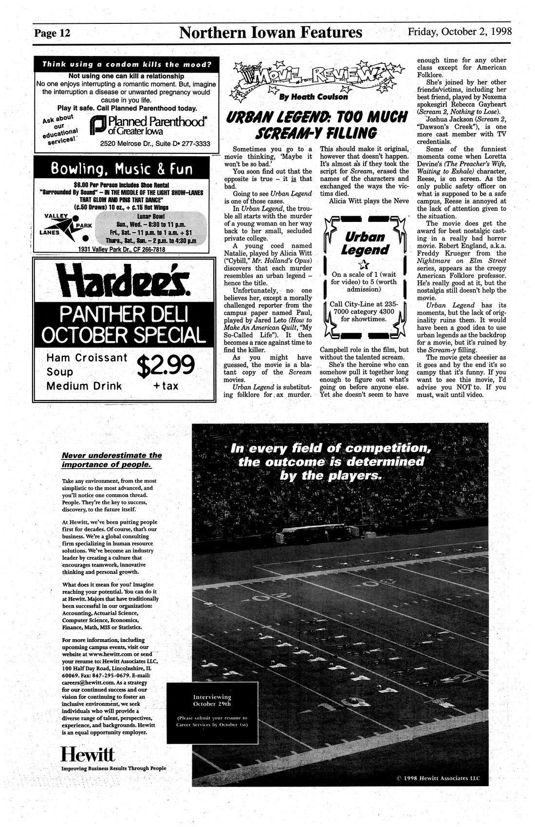 | "Urban Legend": too much scream-y filling | Review of movie "Urban legend" with Alicia Witt. |