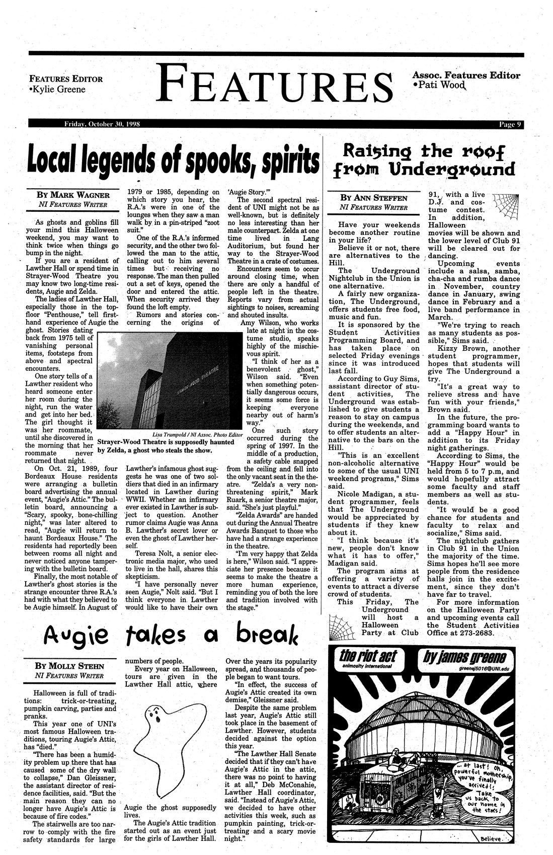 Local legends of spooks, spirits Two well-known ghosts on campus are Augie in Lawther Hall and Zelda in the Strayer-Wood Theatre; photo.