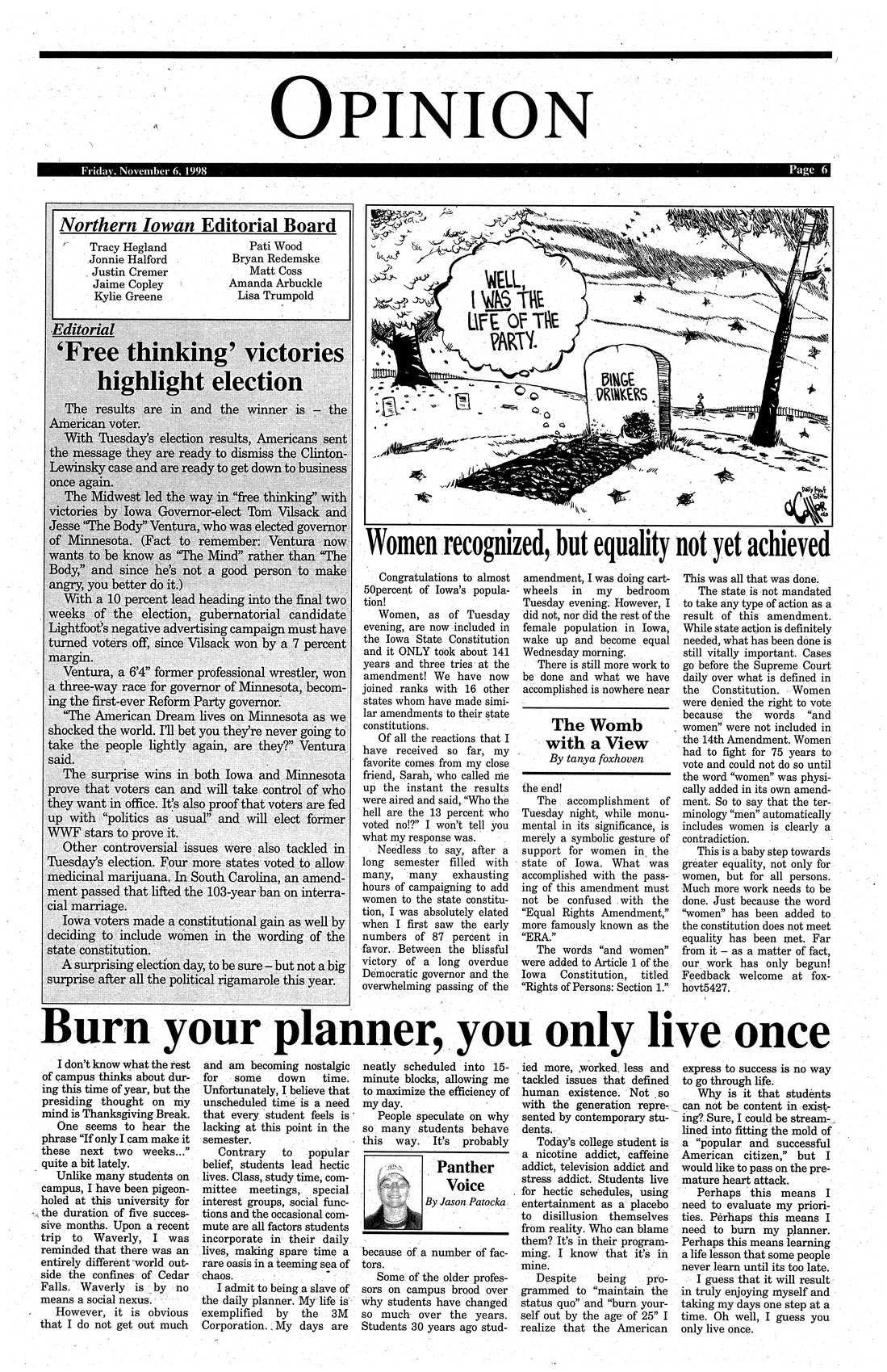 | Women recognized, but equality not yet achieved | Columnist comments on the approval of adding "women" to the Iowa State Constitution. |