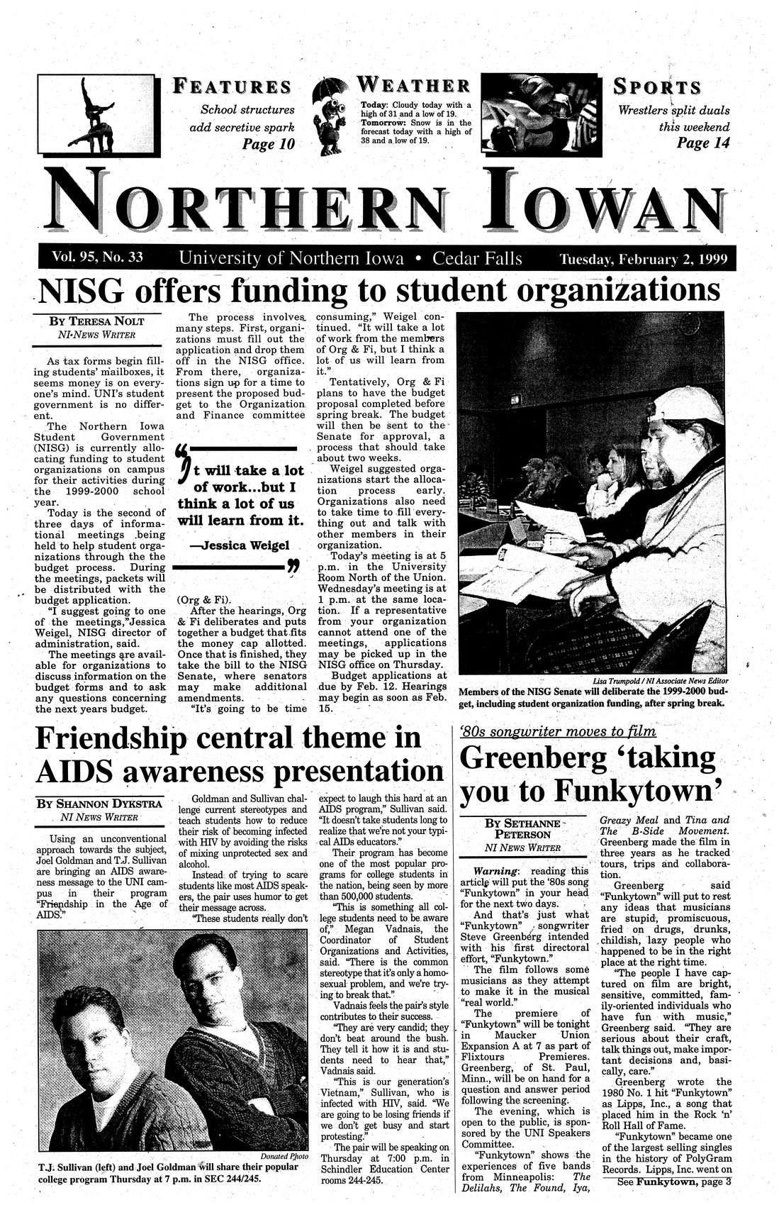 | NISG offers funding to student organizations | NISG is holding the second of three informational sessions today to help student organizations through the budget process; senate budget deliberations will begin after spring break; photo. |