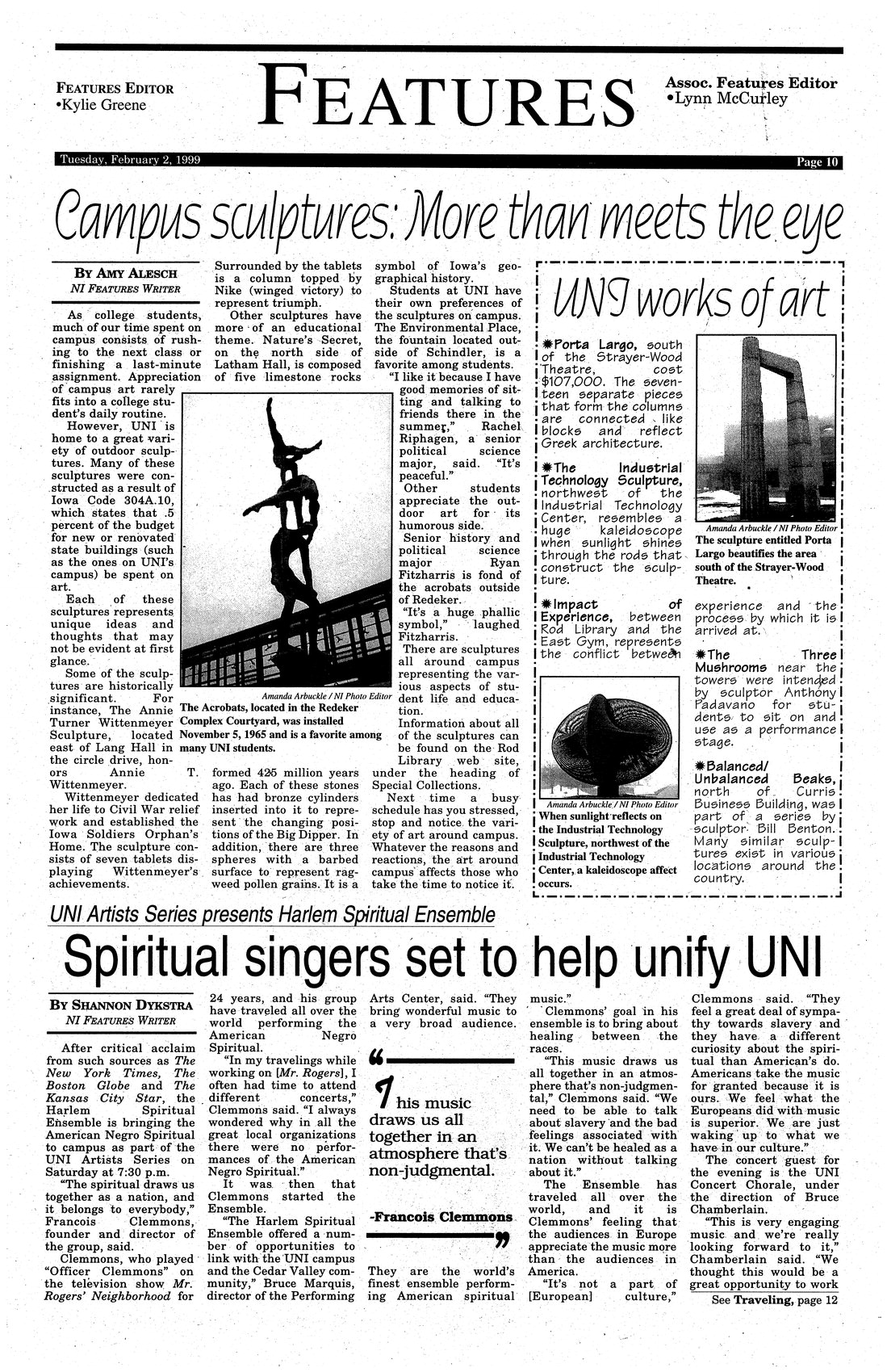 Campus sculptures: more than meets the eye Sculptures around the UNI campus have meaning; photo.