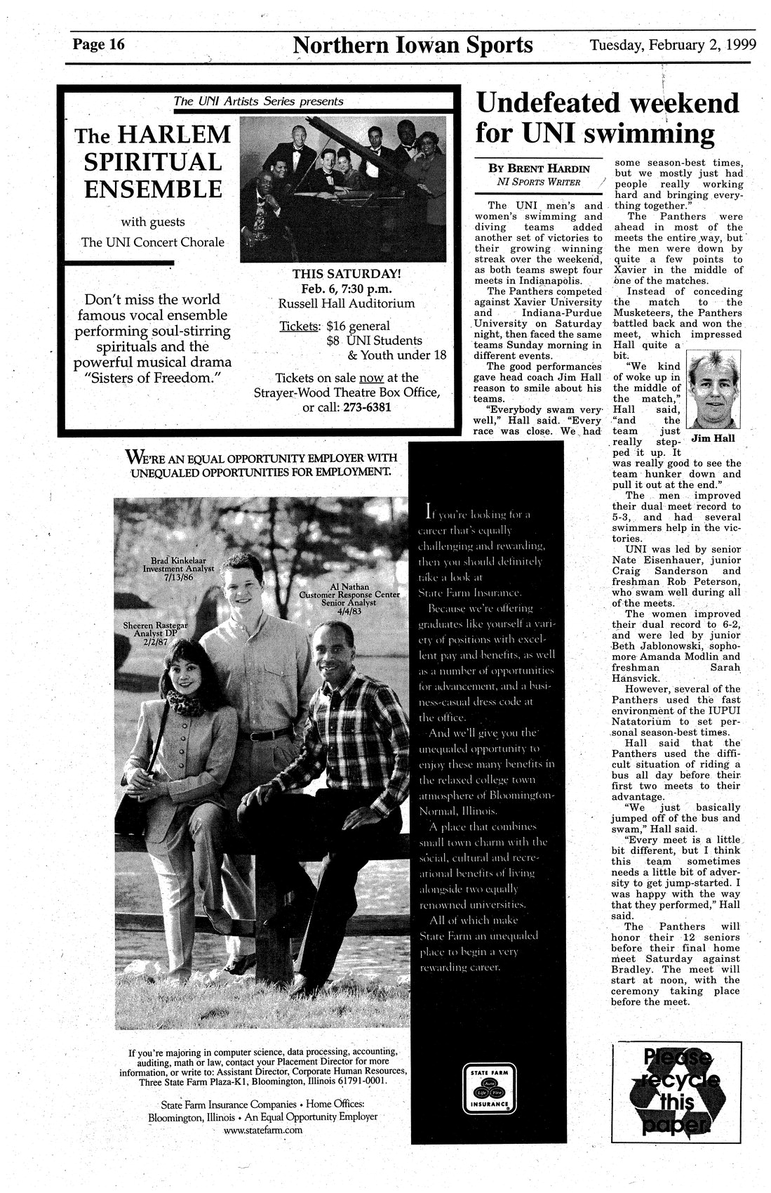 | Undefeated weekend for UNI swimming | UNI competed well last weekend against Xavier University and Indiana-Purdue University; photo. |
