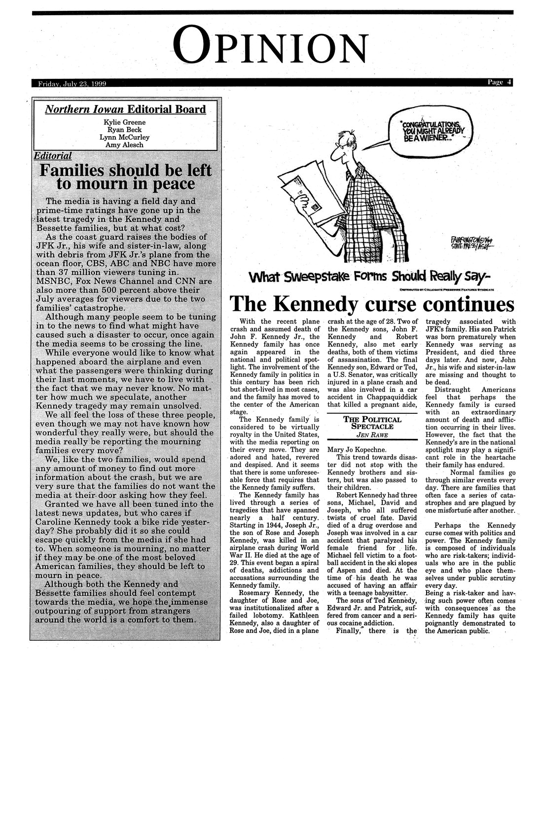 | Families should be left to mourn in peace | Media ratings have gone up with coverage of the John F. Kennedy, Jr., accident. |