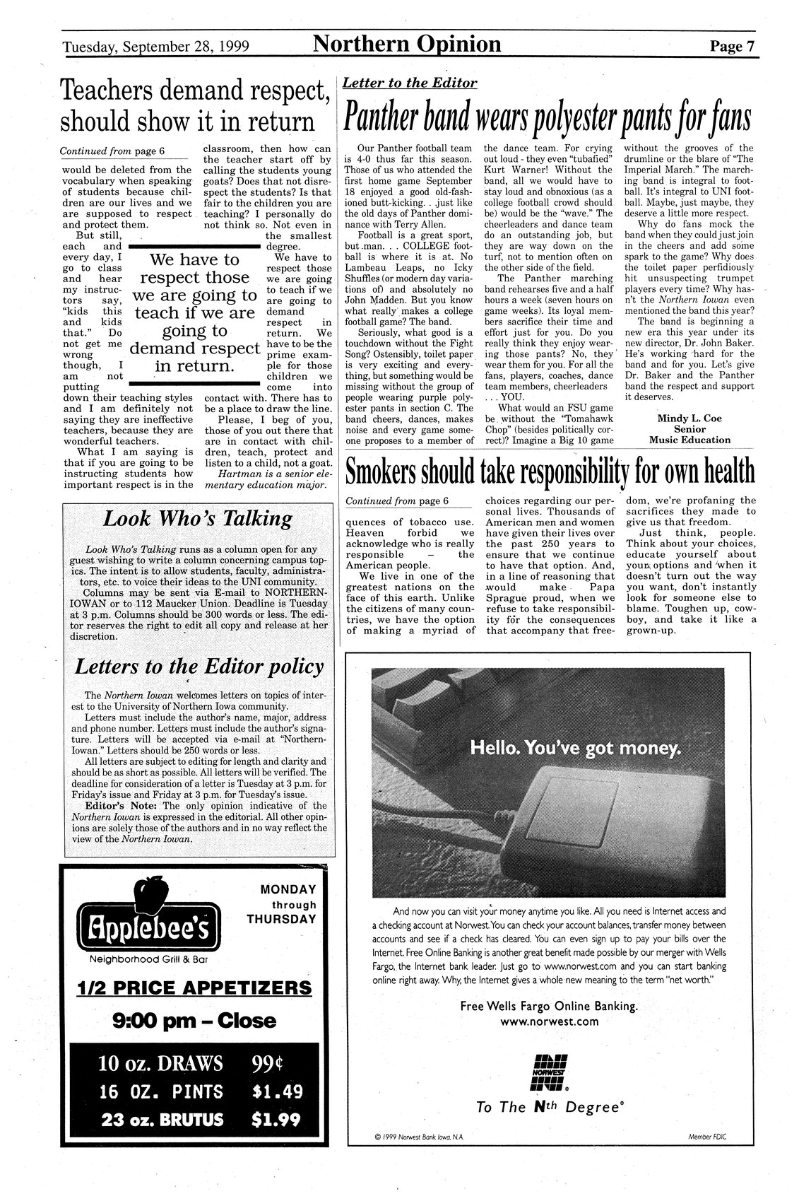 | Panther band wears polyester pants for fans | Letter calls for more respect, better treatment, and greater recognition for the Marching Band; says band is an important part of Panther football. |