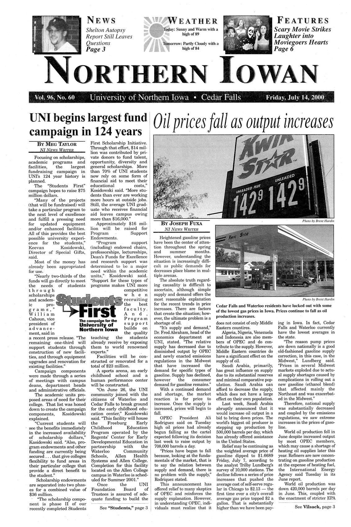 | UNI begins largest fund campaign in 124 years | A fundraising campaign entitled "Students First" hopes to raise $75 million for scholarships, academic programs, and facilities. |