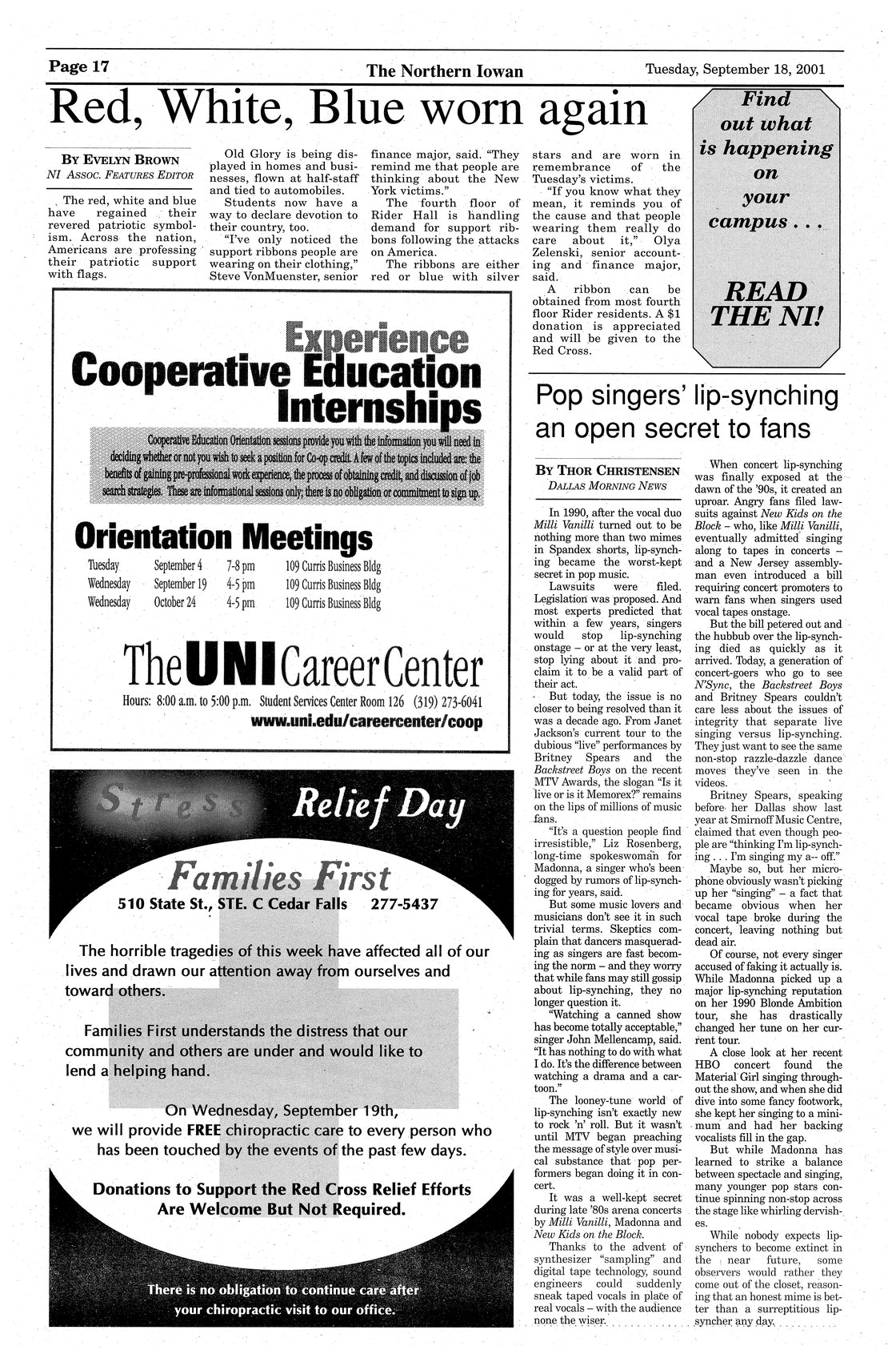 | Red, White, Blue worn again | Rider Hall residents provide students with red and blue ribbons. |