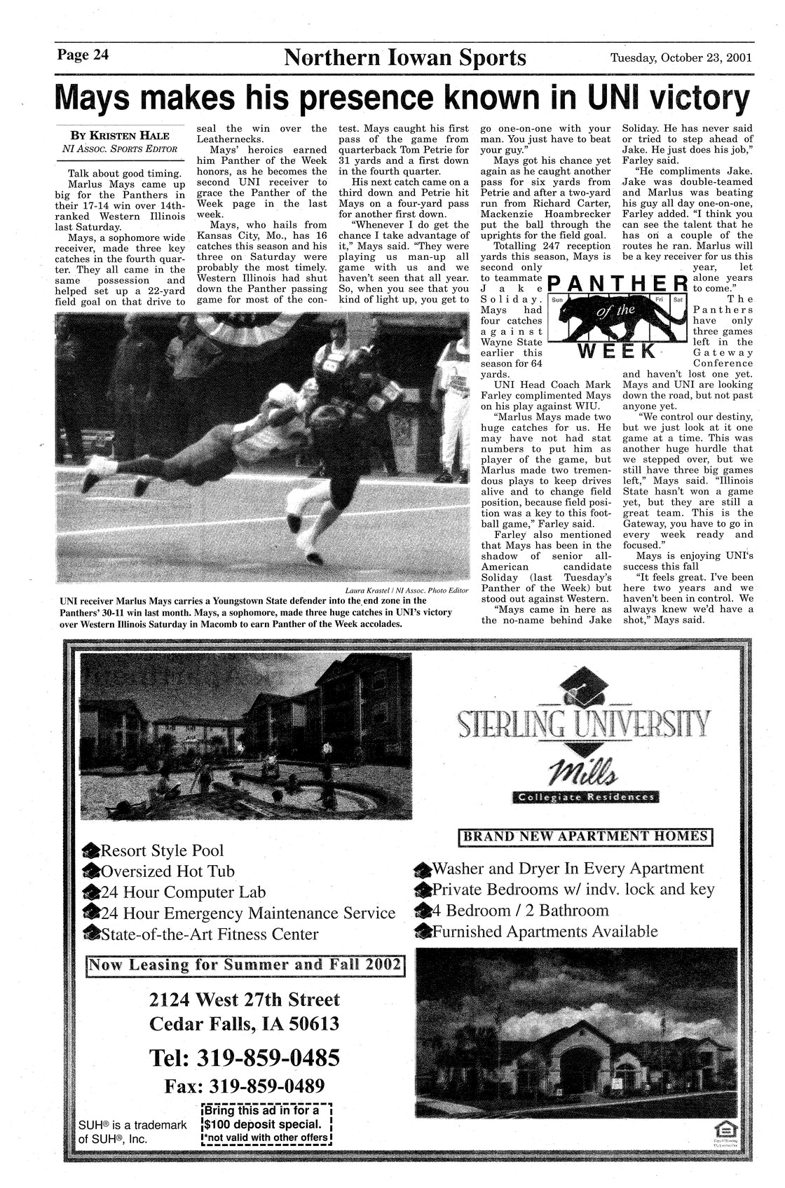| Mays makes his presence known in UNI victory | Profile of sophomore Marlus Mays; photo. |