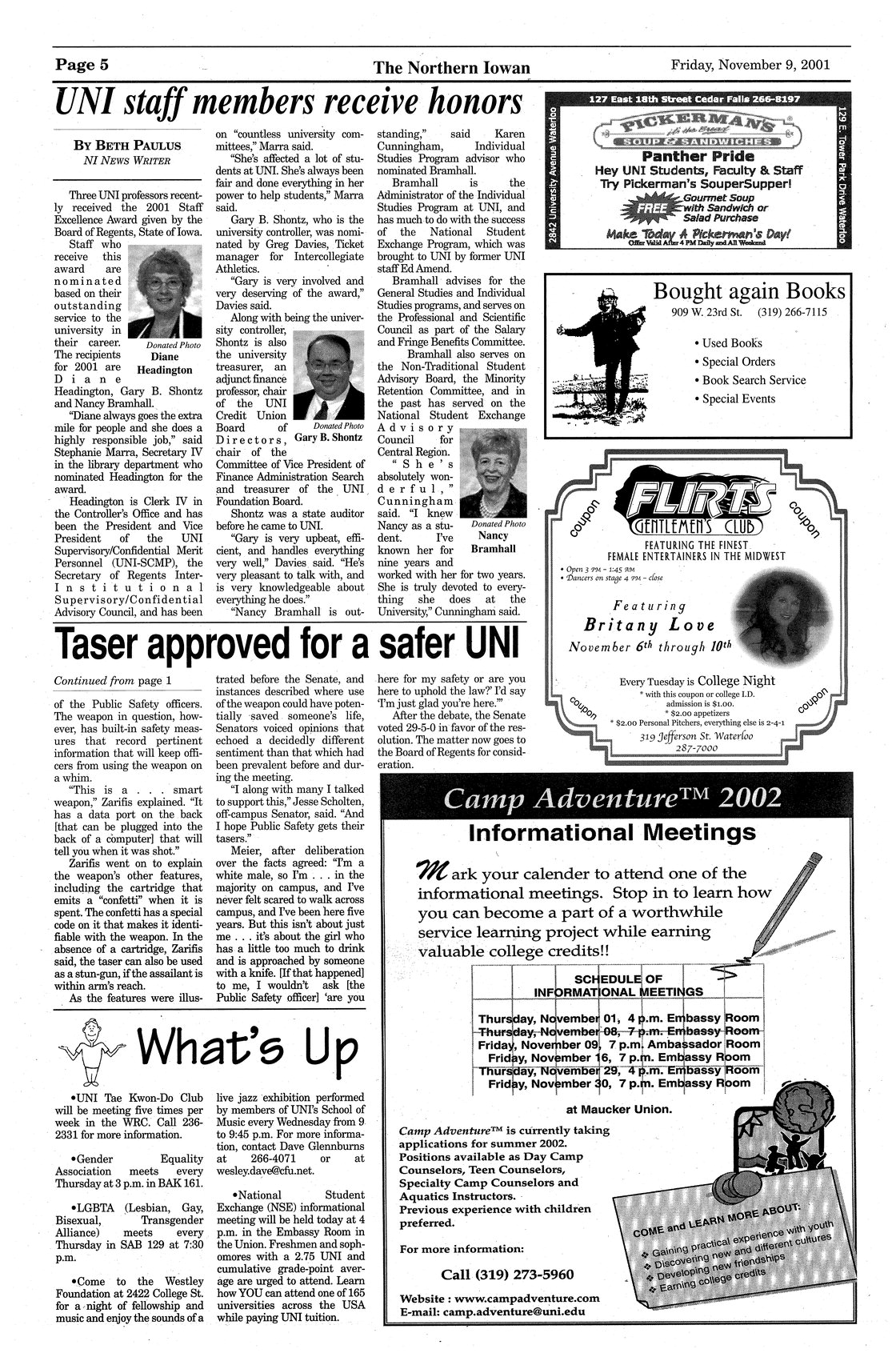 | UNI staff members receive honors | Profile of the winners of the 2001 Staff Excellence Award; photo. |