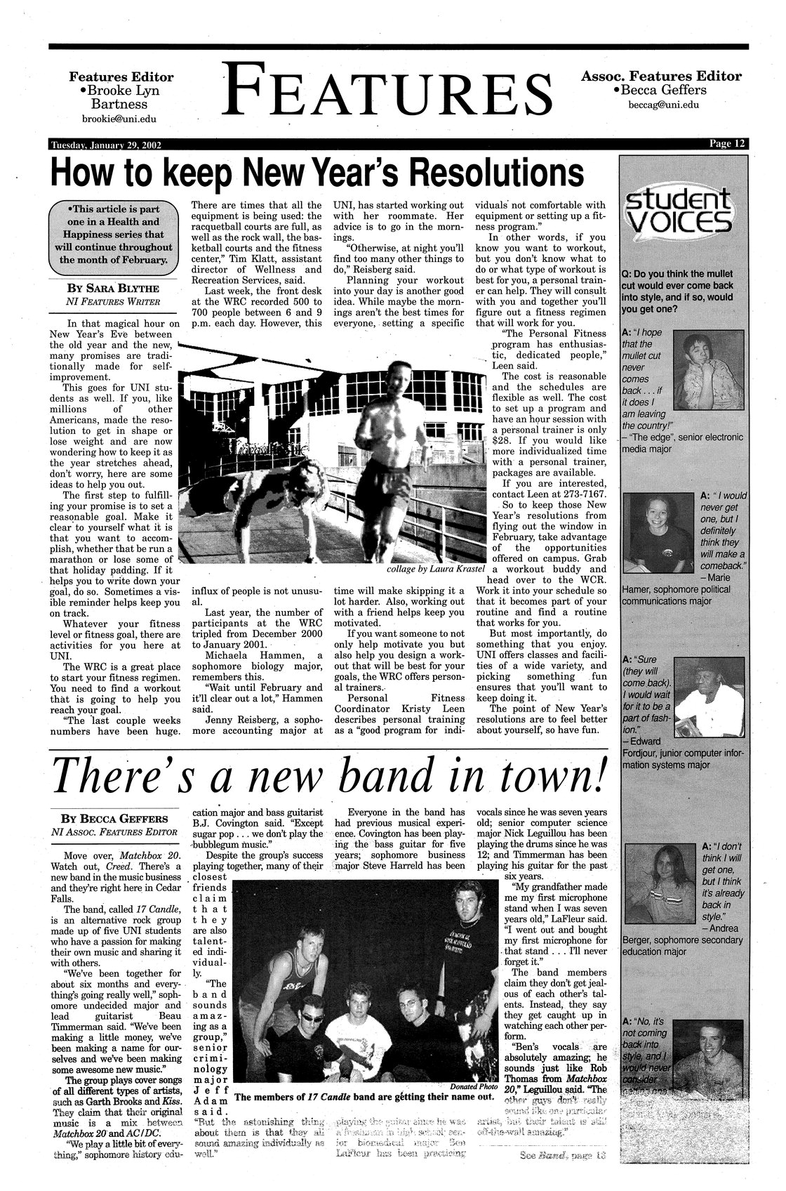 | There's a new band in town! | The local band, "17 Candle," is made up of five UNI students who want to spread the word about their music; photo. |