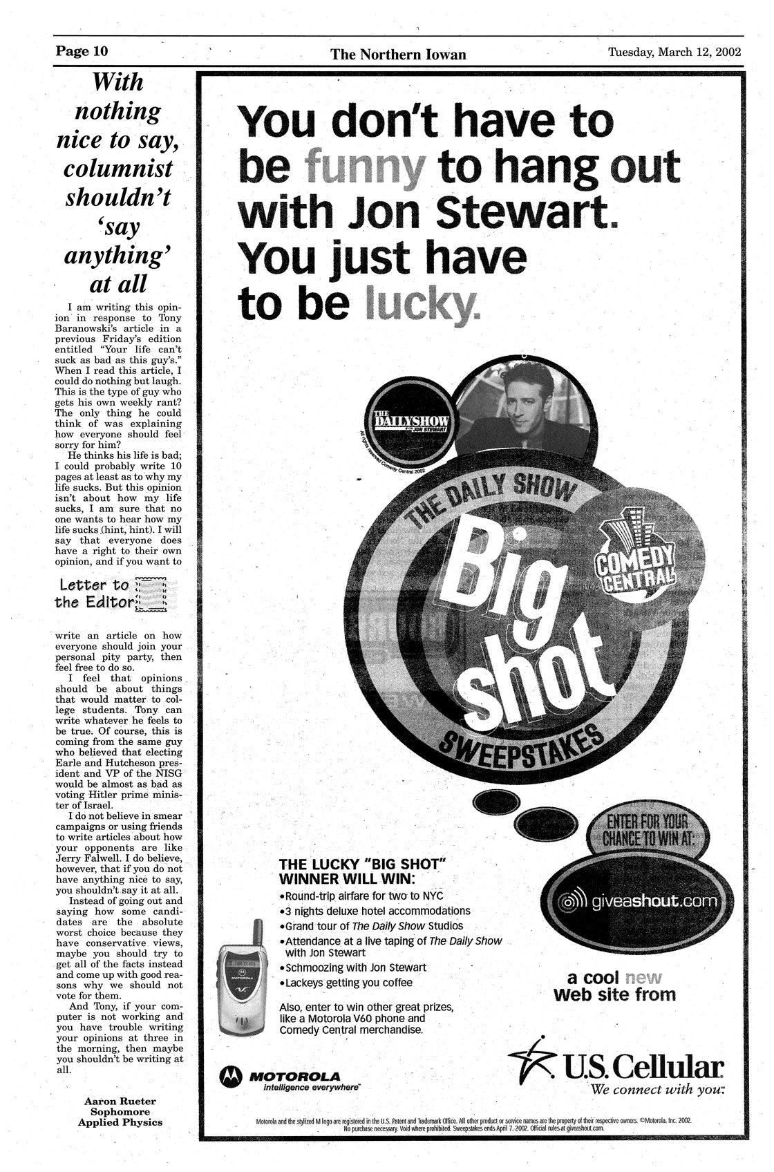 With nothing nice to say, columnist shouldn't 'say anything' at all Criticizes Tony Baranowski's column, "Say Anything."
