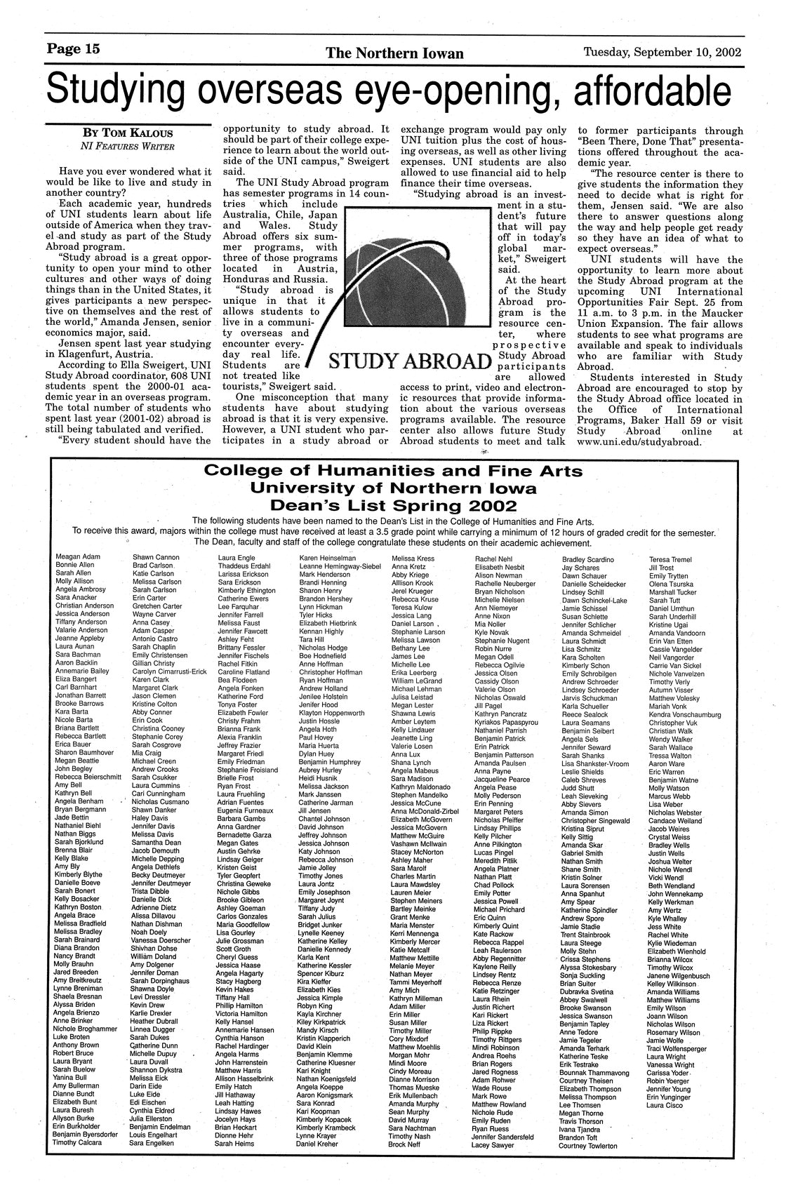 | College of Humanities and Fine Arts Dean's List Spring 2002 | Students are listed. |