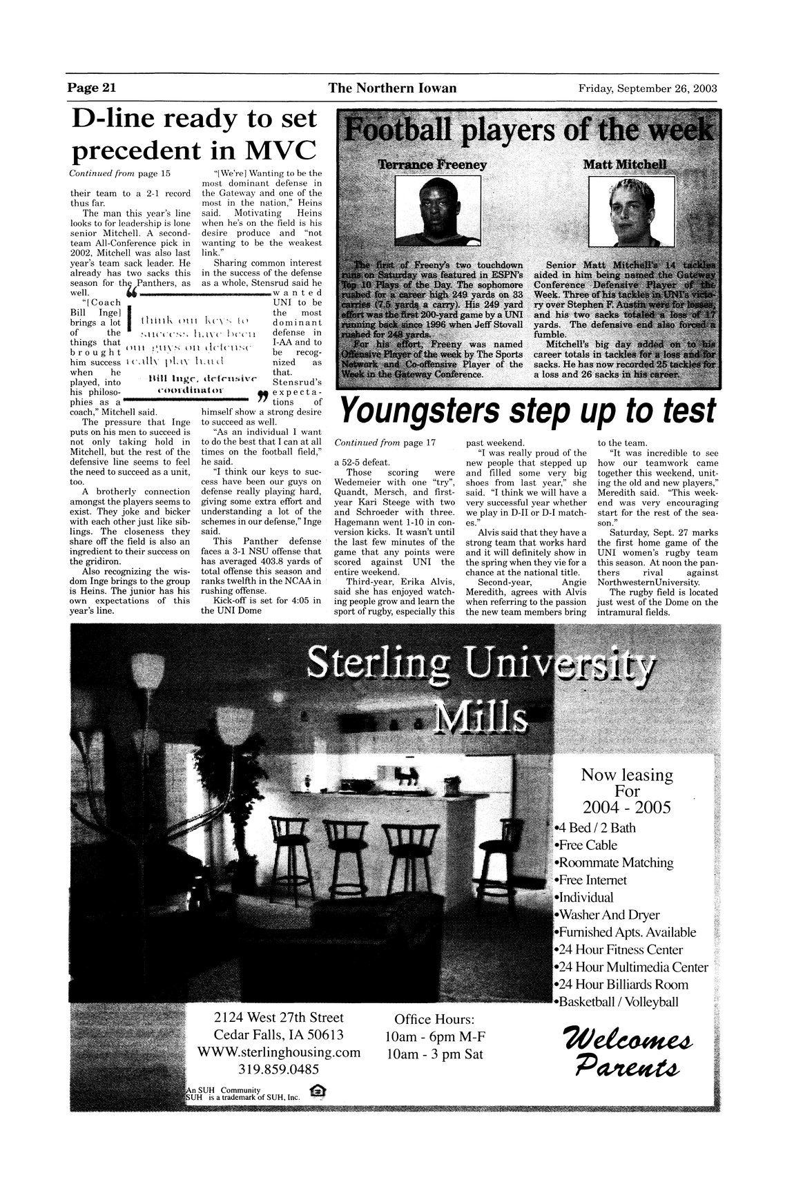 Football players of the week Terrance Freeney and Matt Mitchell are the football players of the week.