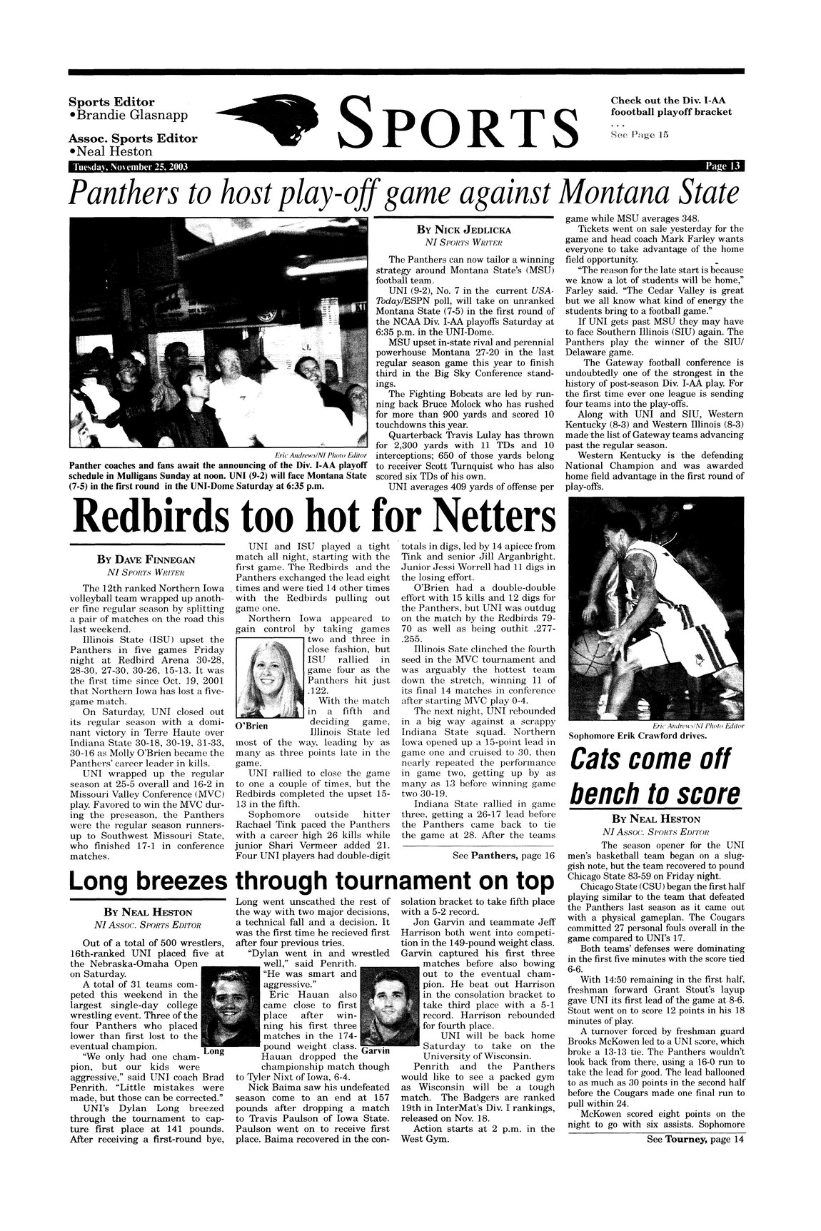 | Panthers to host play-off game against Montana State | Record is now 9-2; ranked seventh in USA-Today/ESPN poll; photo. |