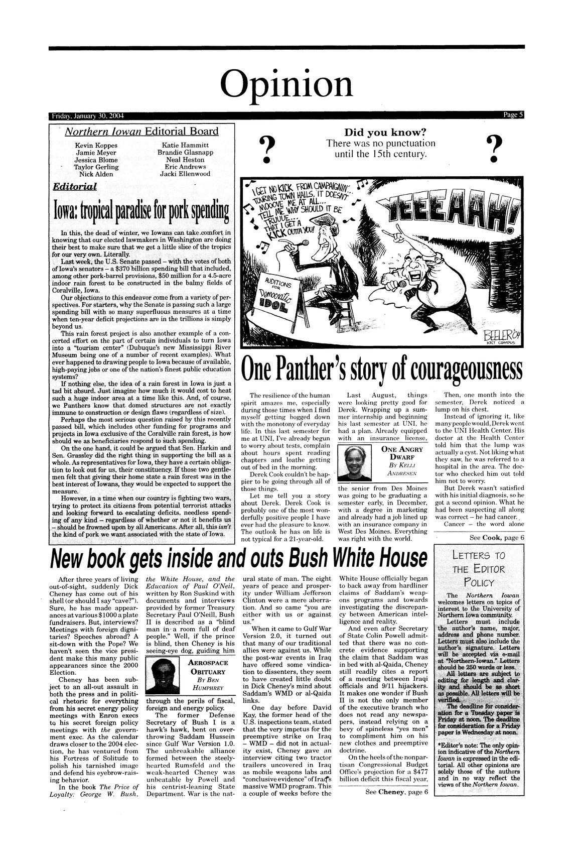 | One Panther's story of courageousness | UNI senior Derek Cook's bouts against cancer recounted. |