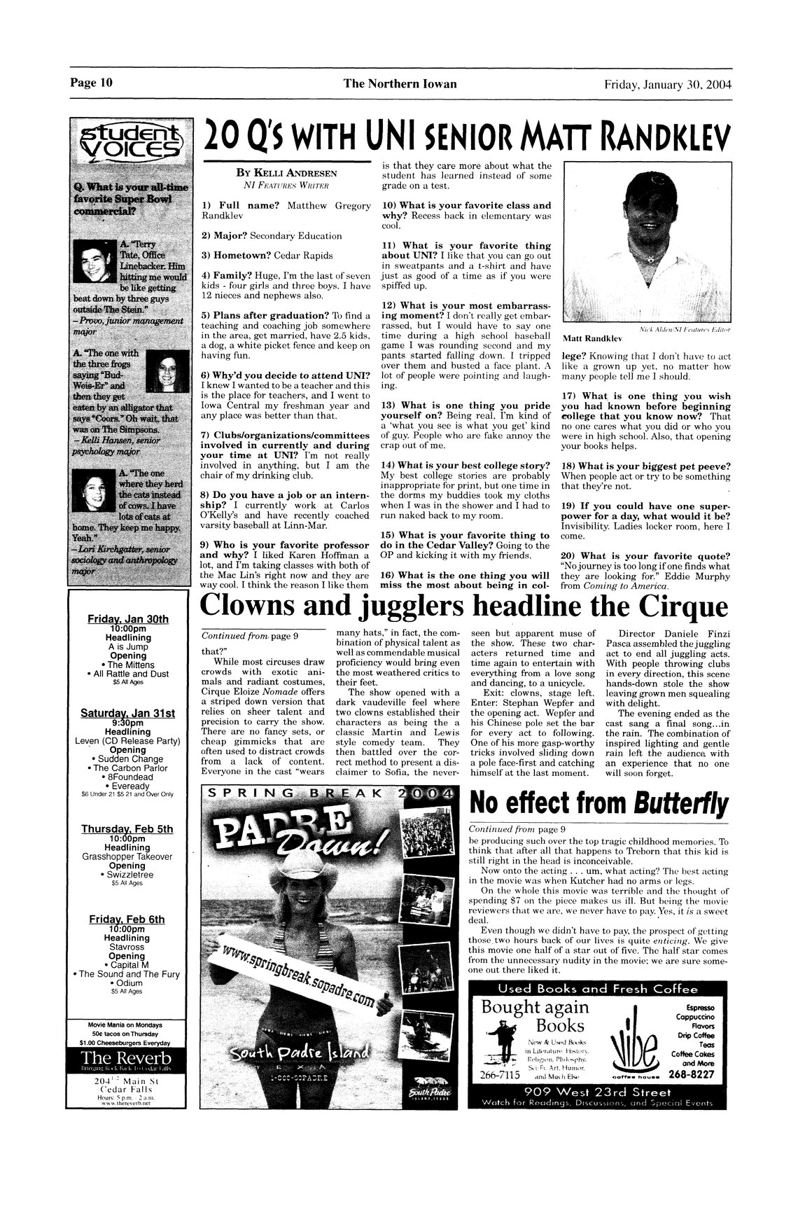 | 20 Q's with UNI senior Matt Randklev | Interview with senior secondary education major Matt Randklev; photo. |
