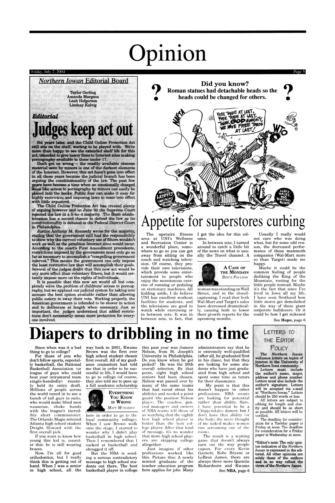 | Diapers to dribbling in no time | Speaks out against the trend of NBA teams drafting players directly out of high school in such large numbers. |