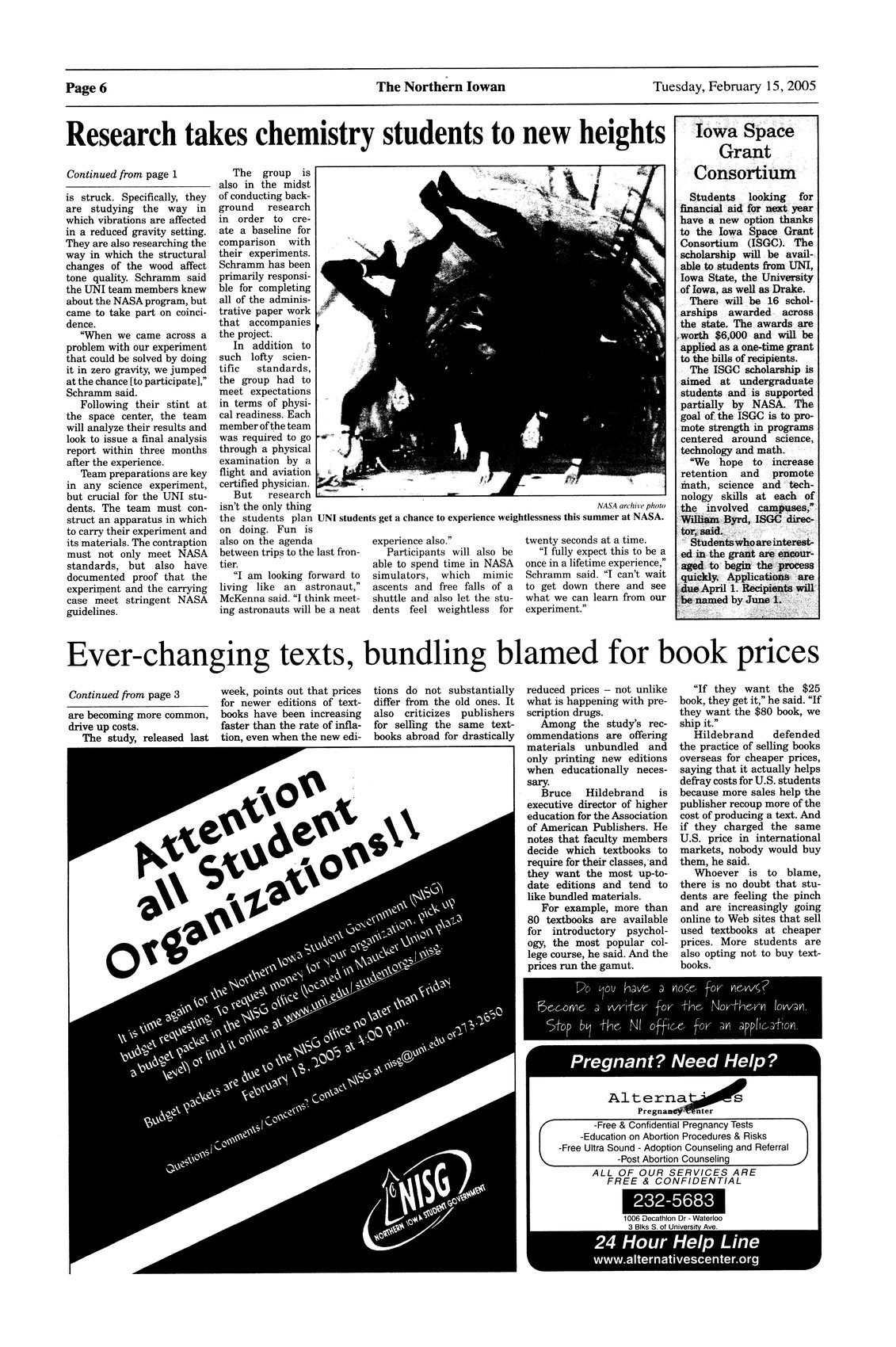 | Iowa Space Grant Consortium | The Iowa Space Grant Consortium is offering sixteen scholarships to students at UNI, Iowa State, the University of Iowa, and Drake. |
