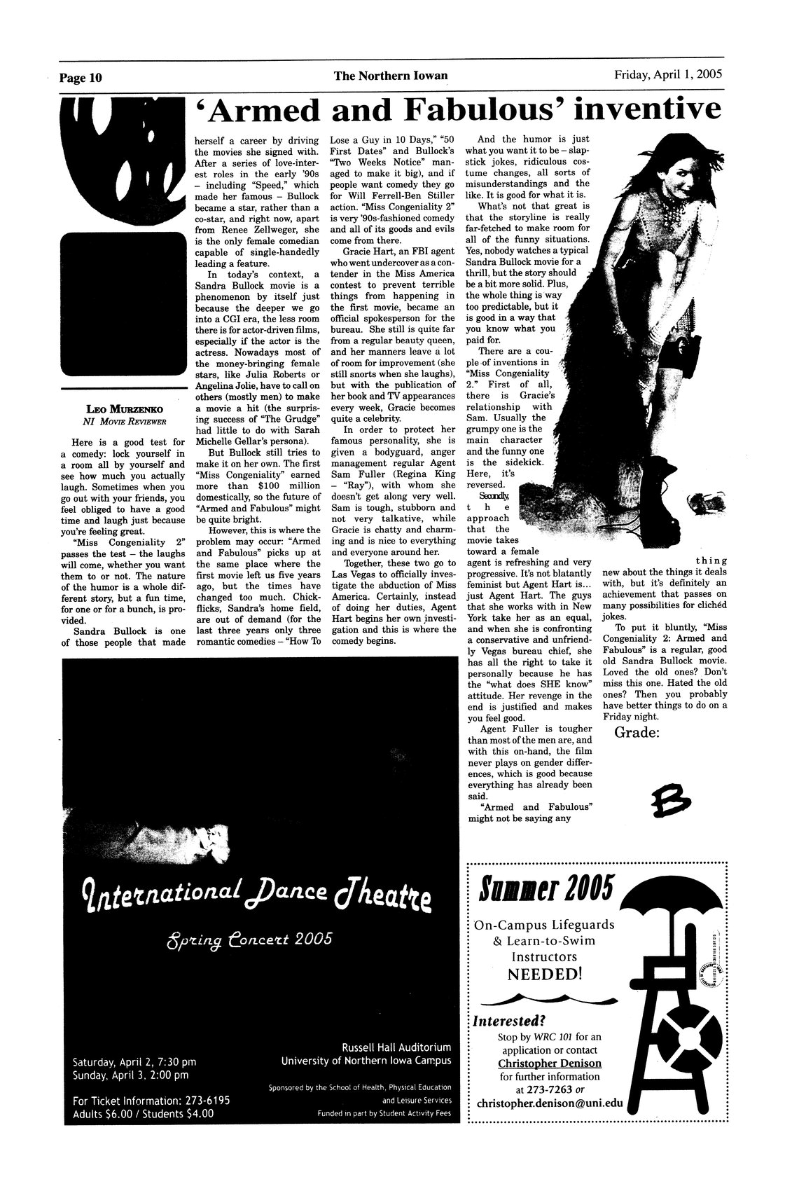 | 'Armed and Fabulous' inventive | A review of the new movie, "Miss Congeniality 2: Armed and Fabulous"; photo. |