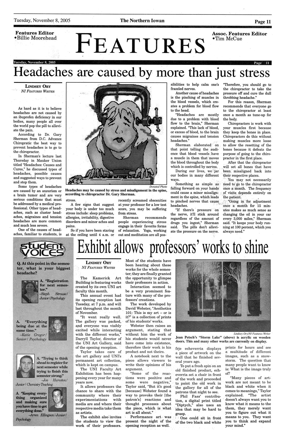 | Exhibit allows professors' works to shine | Exhibit at the Gallery of Art showcases faculty art work; photo. |